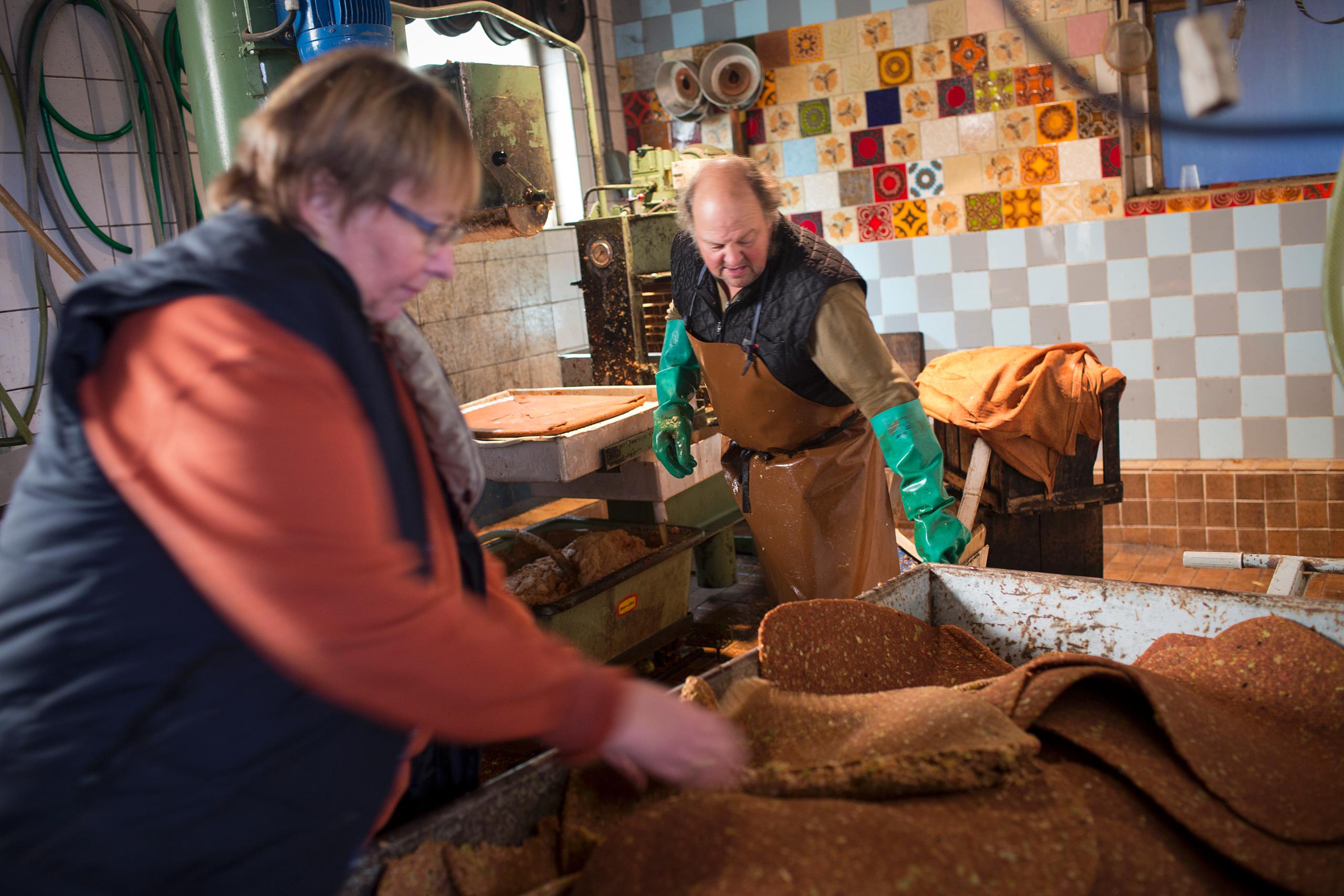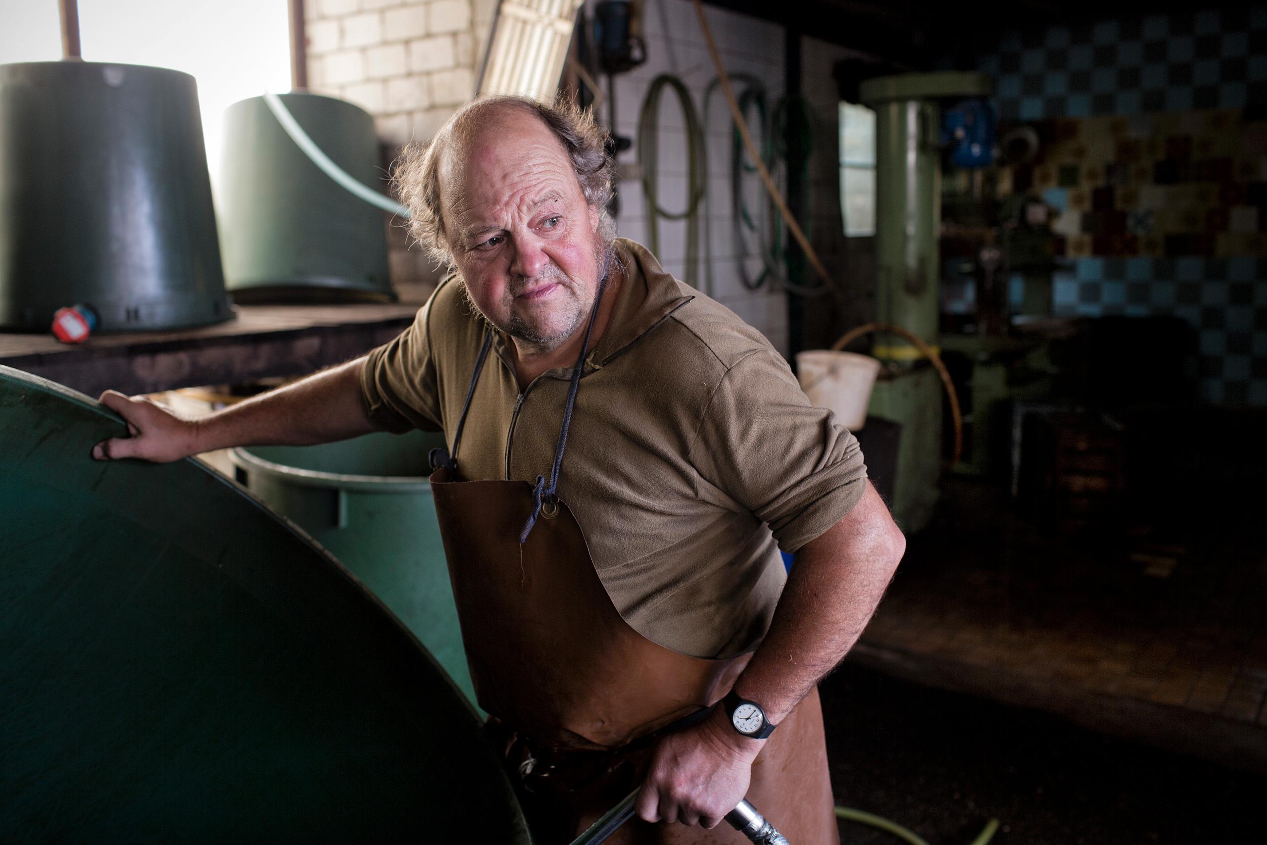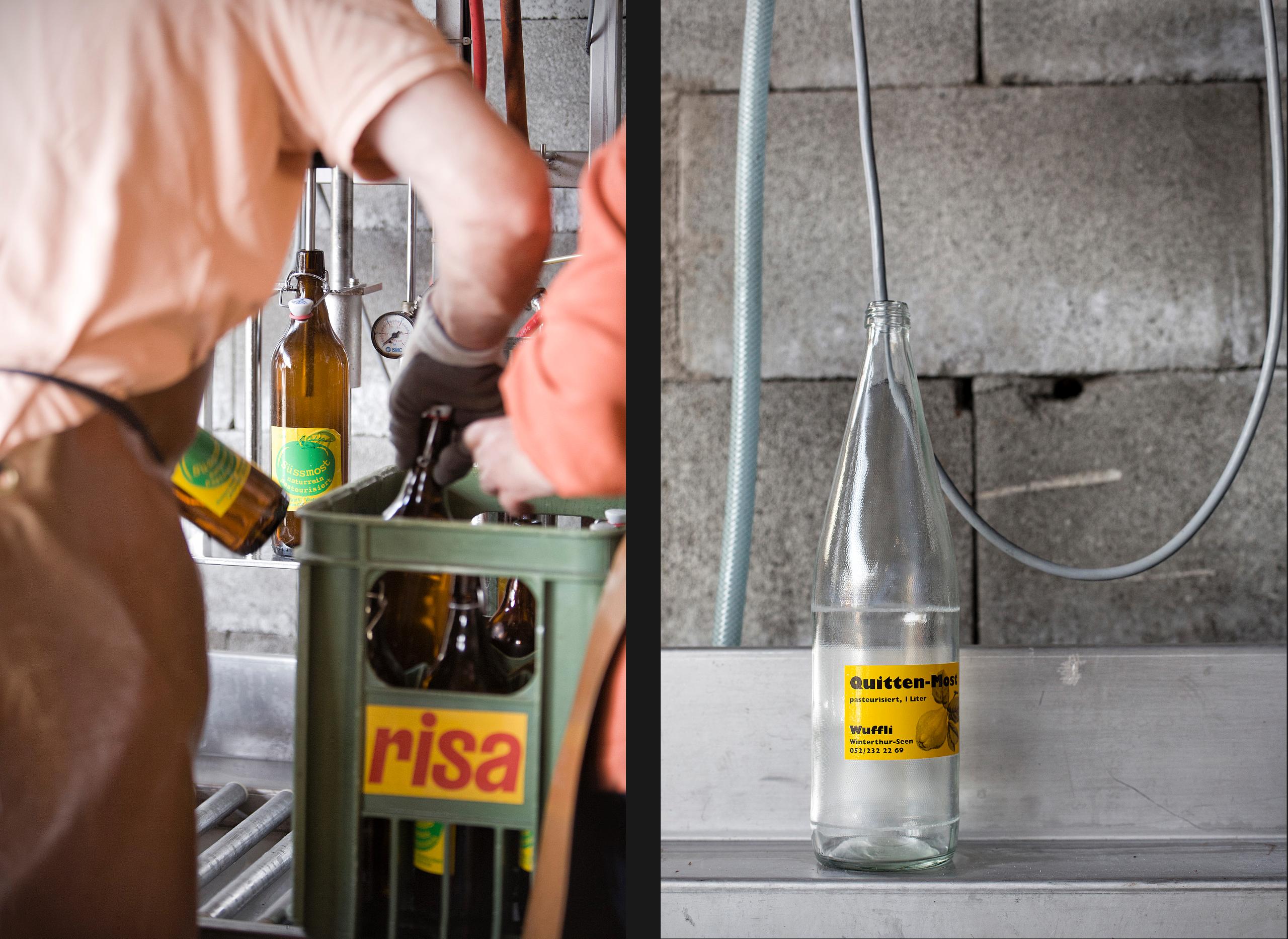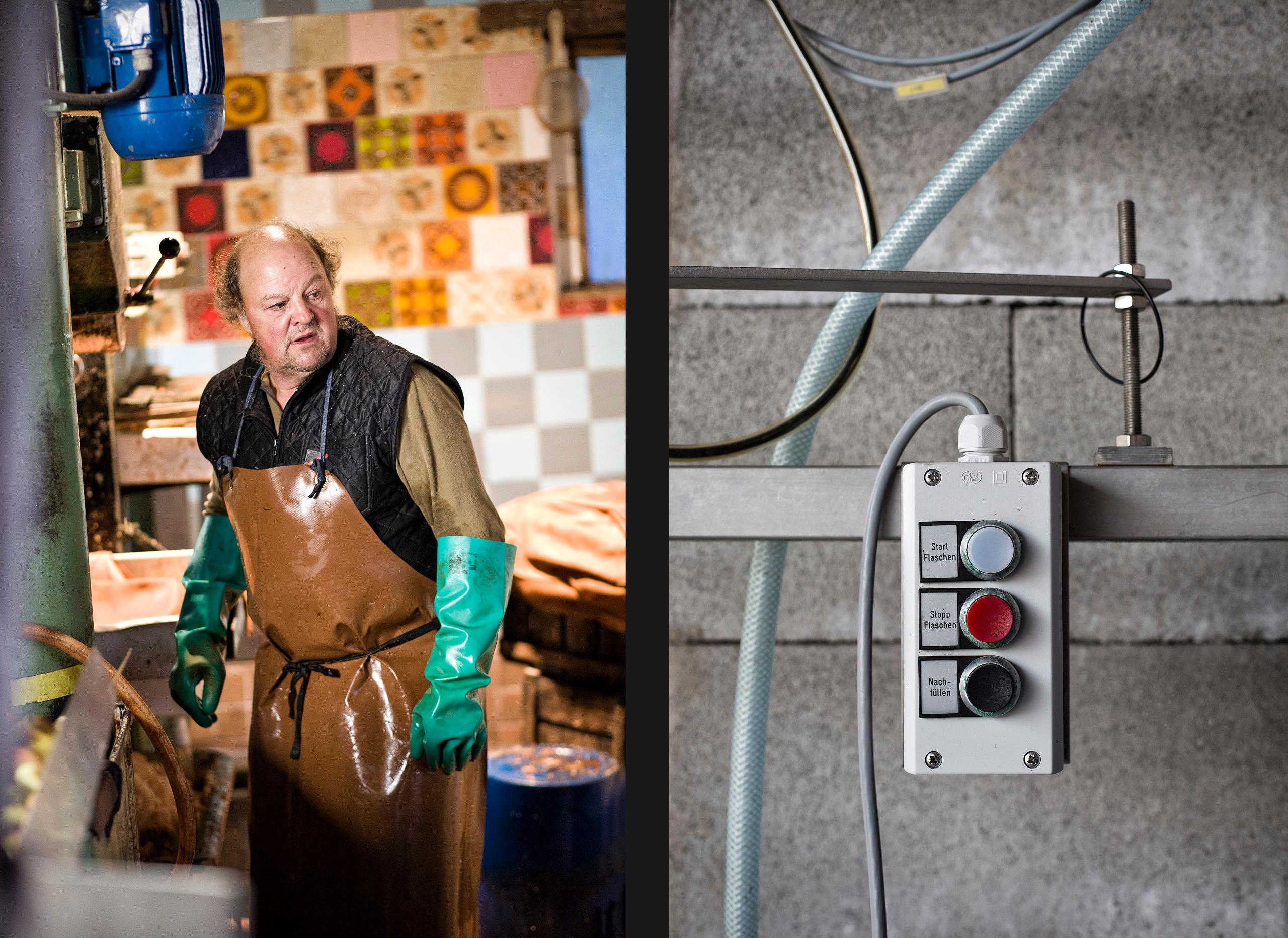 ヴッフリさんはリンゴジュースだけではなく、ブランデーも作っている。大きな釜を持って農家に出かけ、その場で果実を蒸留する数少ないブランデー製造者の一人でもある。