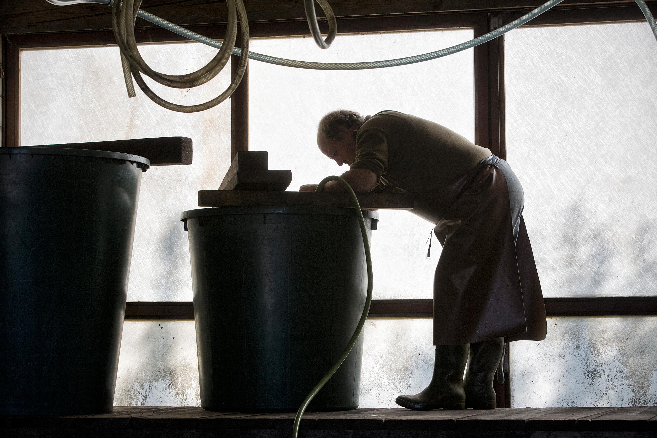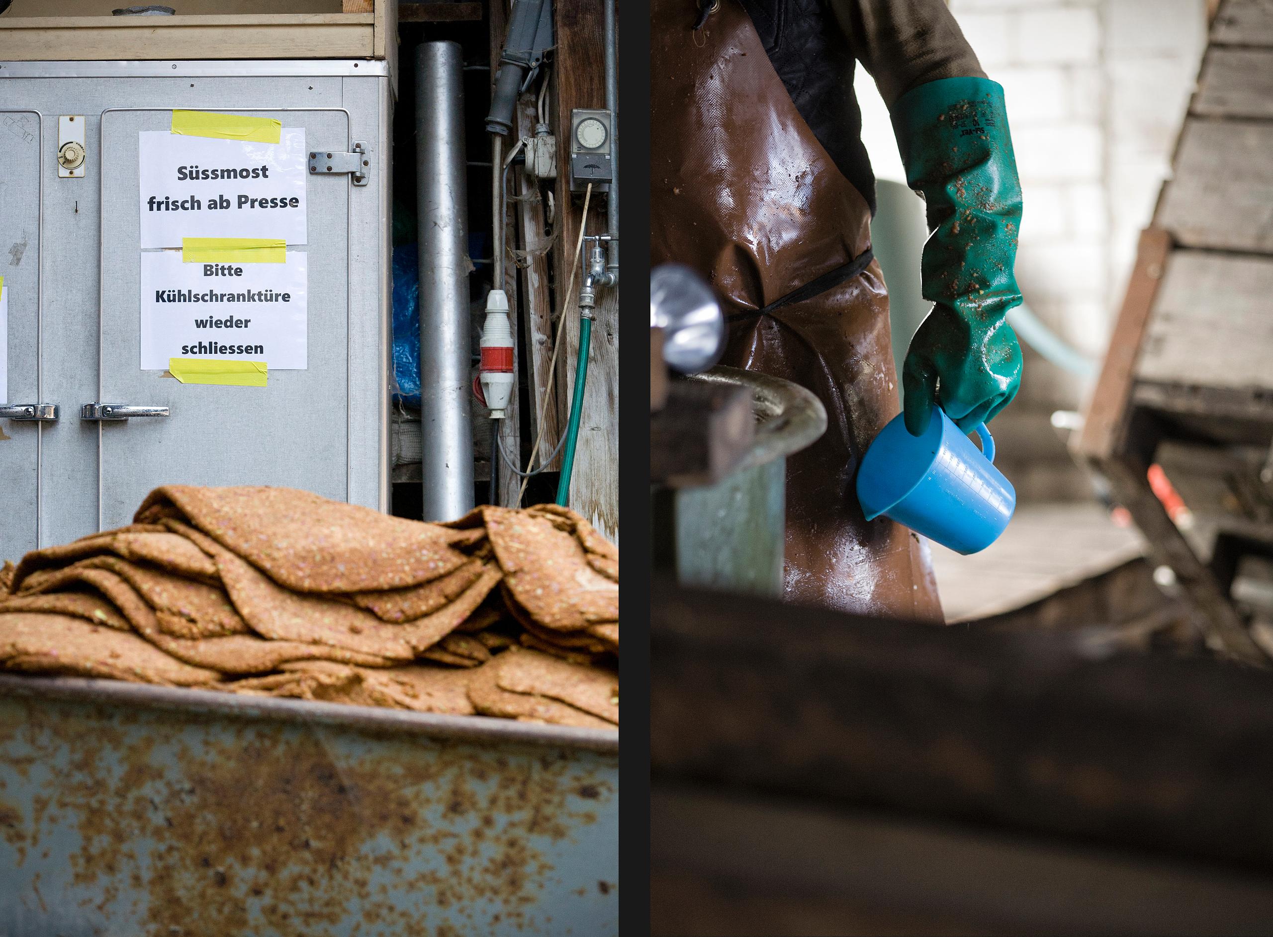 ようやく夜が明けようとするころ、ハインツ・ヴッフリさんはてきぱきと仕事を始める。リンゴジュース作りを始めて何年も経つ。その動作は正確で、これまで何千回と繰り返されてきたもので、まるで機械仕掛けのようだ。ヴィンタートゥールの郊外、森の入り口にあるヴッフリさんのシードル工場の裏庭には、早朝の澄んだ空気が漂い、おぼろげな光が差し込んでいる。