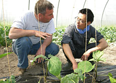 吉濱さんは日本の国際農業者交流協会のプラクティカル・コースに応募してスイスに来ることを望んだ。北海道で畜産を学び、宮城県でブタの飼育をしていたが野菜の方が自分には合っているかなと思ったという。ケルツェルスでの研修は4月からで始まったばかり。スイスでは複合農業のあり方を学びたいと言う。ヨーナー農場は14種類のサラダ菜、10種類のジャガイモ、赤、黄色、紫など8種類のニンジン、タマネギ、カボチャ、ナス、トマト、ハーブなどおよそ60種類の野菜や穀物を栽培しているので、吉濱さんの希望には打って付けのようだ。