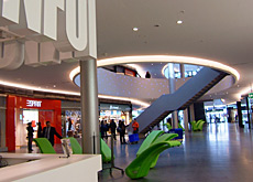 ショッピングセンターといえば、都市郊外にあるのが主だ。しかし、投資額6億フラン ( 約580億円 ) のシールシティは、チューリヒの中心地から路面電車で10分の距離にあり「チューリヒ市に融合した施設」と企画責任者のコンラディン・シュティッフラー氏は強調する。