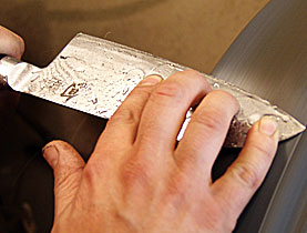 現在、ダマスカス合金の包丁を買い求めるのは8割が男性。女性にはセラミック包丁が人気だという。