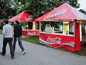 チューリヒ市では、リマット川沿いを「ファンマイル ( Fun Mile ) 」と命名し、サッカーグッズやソーセージのスタンドなどが立ち並んだ。1万5000フラン ( 約157万円 ) の場所代を払ったにもかかわらず、ソーセージは箱いっぱいに残ってしまった。商いになったのは、ベルビュー ( Bellvue ) 広場だけ。45万人以上の人が設置されたビッグスクリーンで試合を観戦し、ソーセージとビールの売り上げは300万フラン ( 約3億1300万円 ) に上った。
