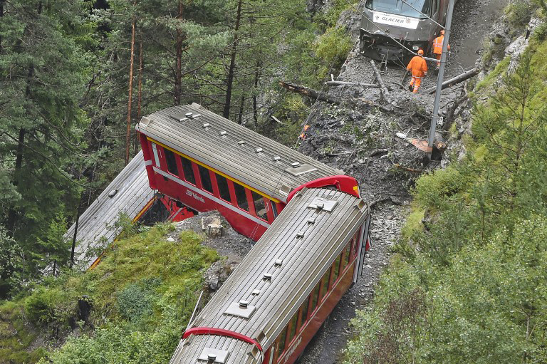 スイス・グラウビュンデン州で13日午後、土砂崩れによる列車の脱線事故が起き、日本人の乗客2人が病院に収容された。事故を起こしたレーティッシュ鉄道によると、この列車は夏に多くの観光客が利用する「氷河特急」ではなく、地域の駅を結ぶ普通列車だったという。
