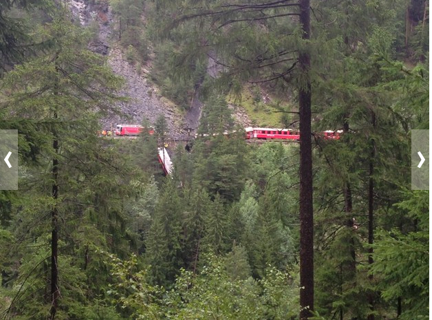 現時点でのグラウビュンデン州警察の発表によると、ティーフェンカステル発トゥシス方面に向かっていた列車は13日の12時30分ごろ、サロンス(Salons)トンネルとミスタイル(Mistail)トンネルの間にある区間で起きた土砂崩れに巻き込まれた。脱線した3両のうちの1両が谷の斜面を滑り落ちたが、10メートル下にある木にひっかかり停止した。