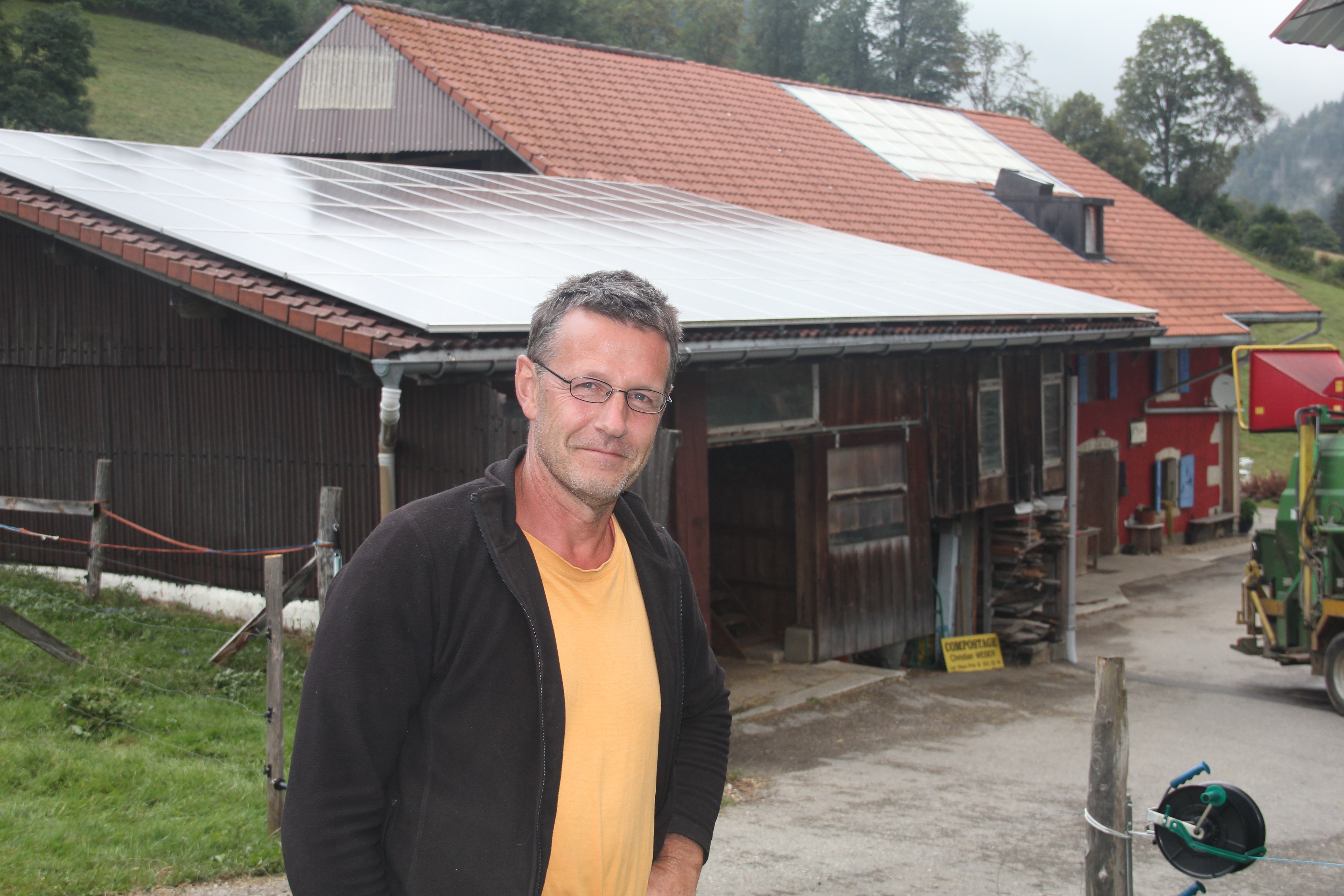「エネルギー問題はここ数年で重要なテーマとなり、皆がそれについて考えている。我々農家には、クリーンなエネルギー生産を自家生産するのに必要なすべてがそろっている」と、ヌーシャテル州ヴァル・ド・リュ(Val-de-Ruz)の農家クリスティアン・ヴェーバーさんは言う。