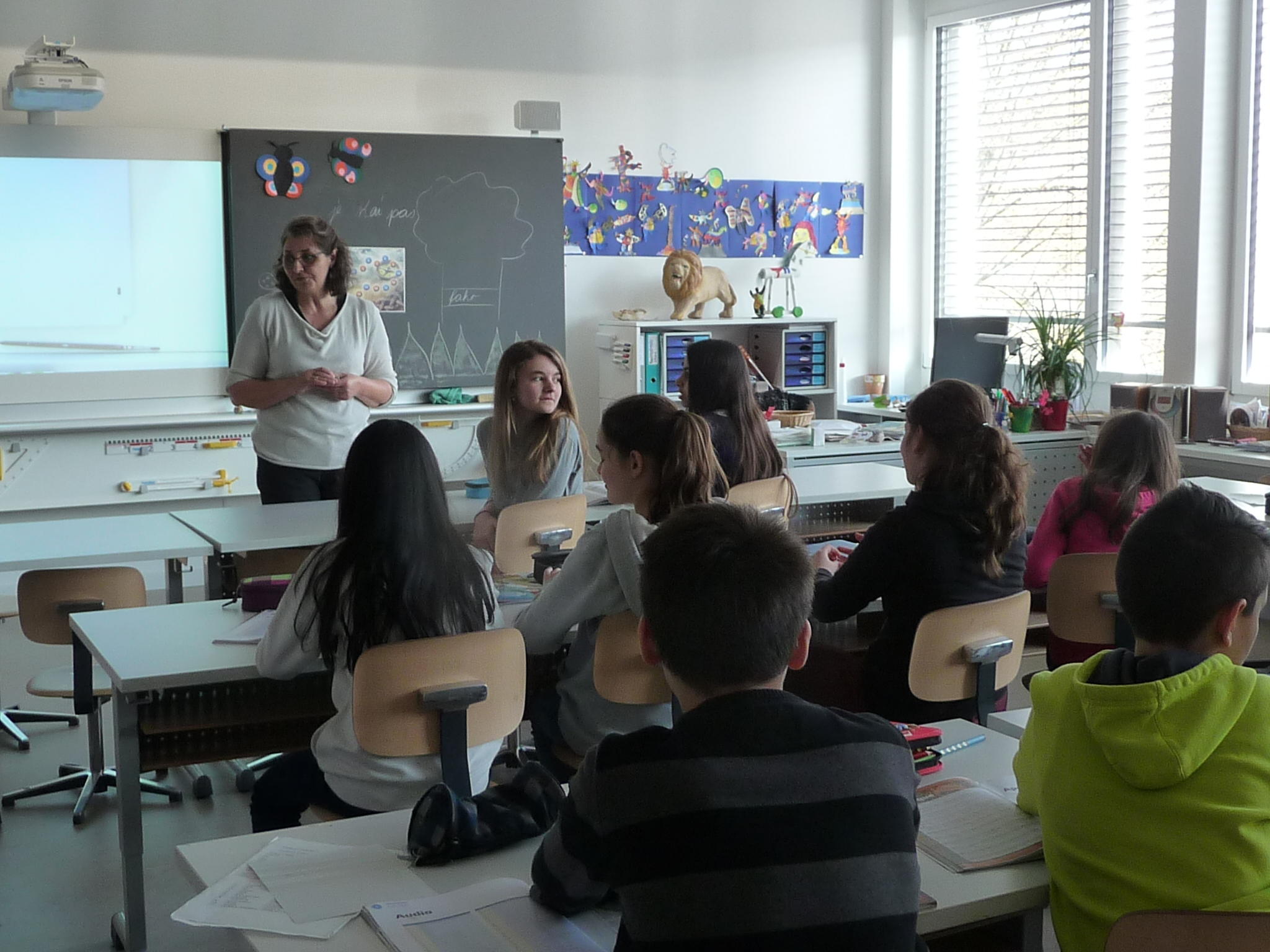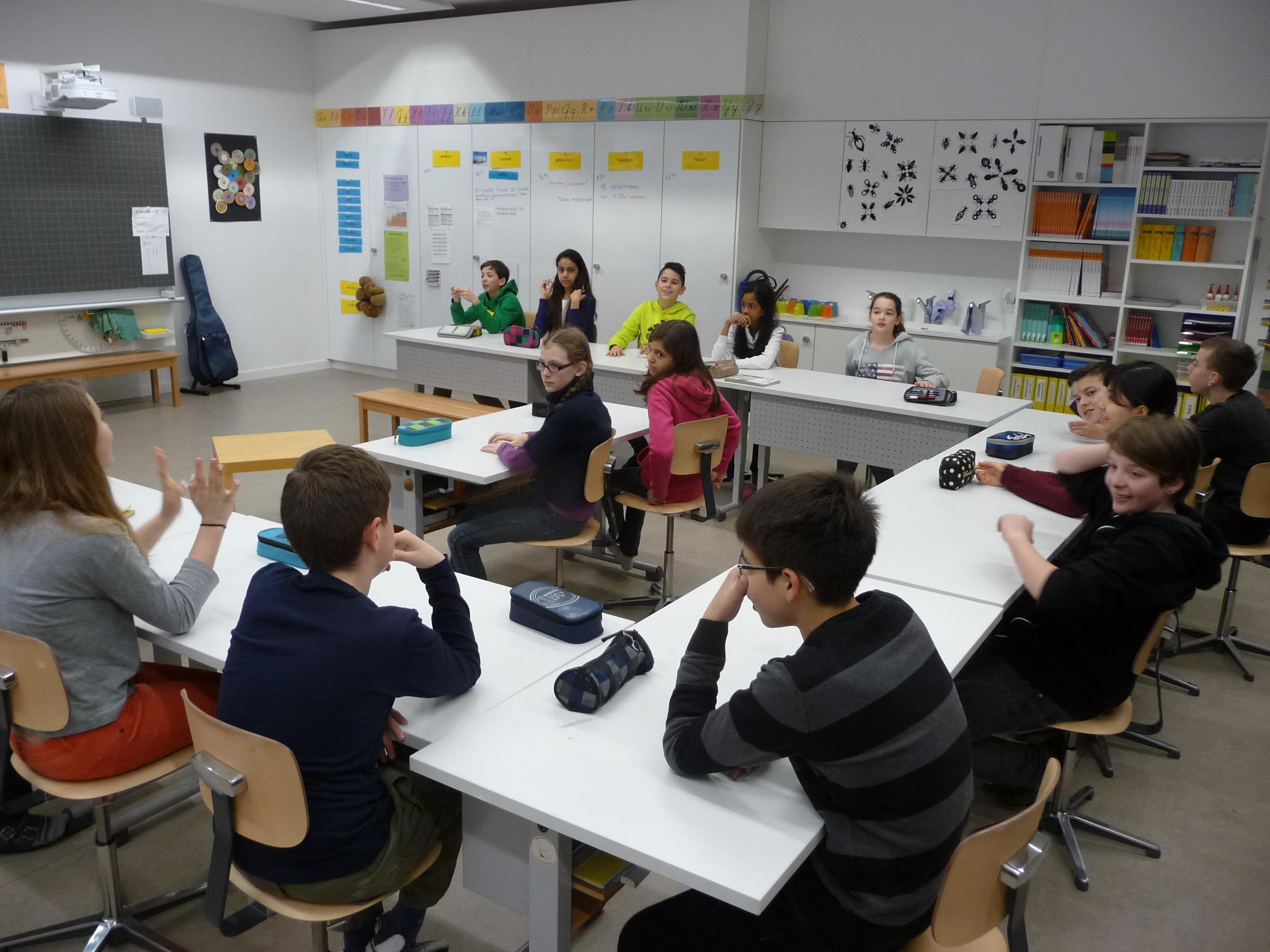 先生は始めの方こそフランス語で話し、子どもたちにもフランス語を要求していたが、やがてお互いドイツ語になってしまった。フランス語は4年目だが、歌やドラマで覚えることもなく、苦手な子が多いそうだ。見学していた私も授業を理解できず、正直つらかった……。