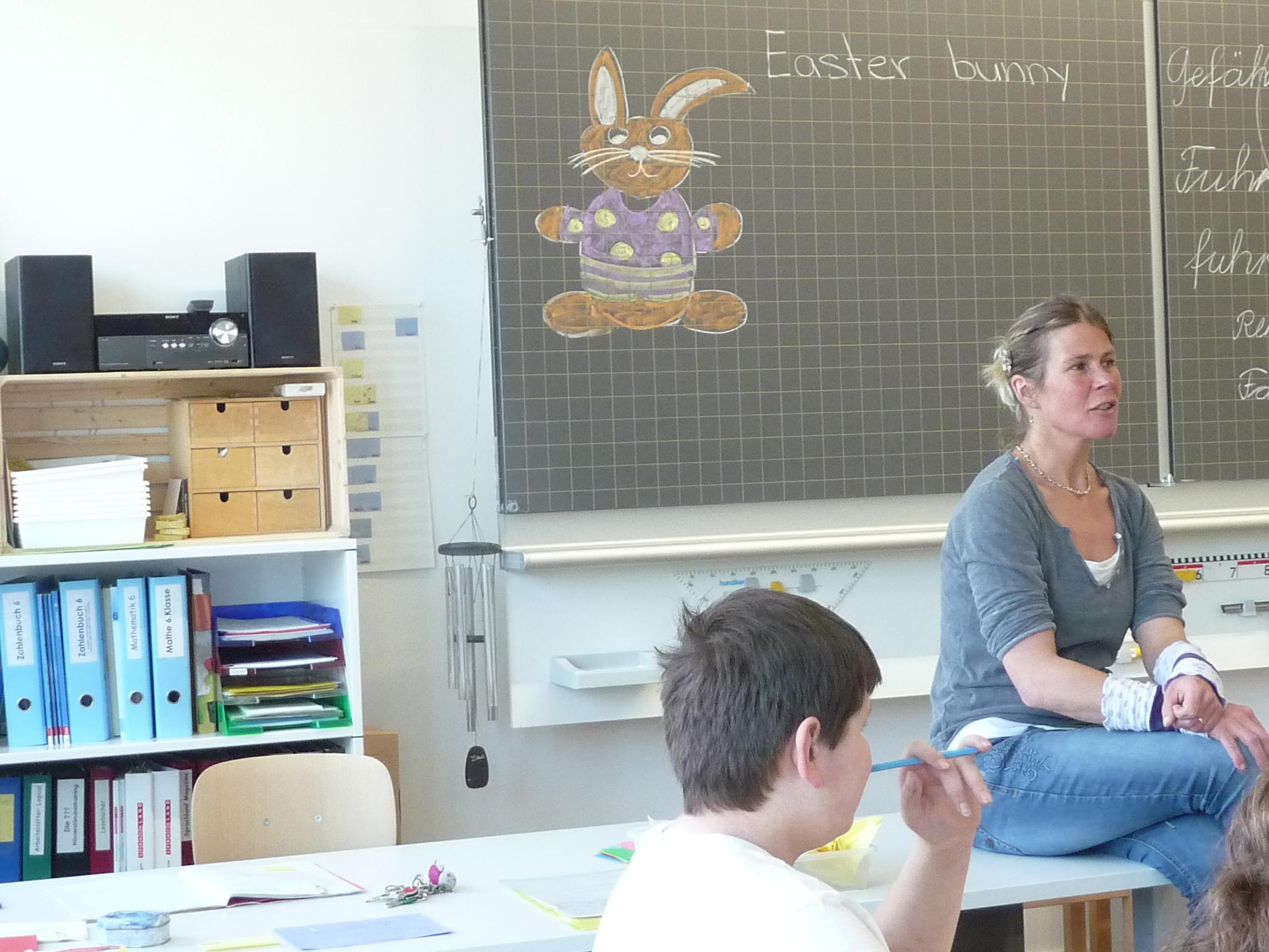 時間割には、8:27まで学活とある。歌を歌ったり、あった出来事を話したり、クラスの問題を話し合ったりする。が、先生によっては学活がない。担任はトメン先生だが、今日は副担任のクラフト先生が担当。5分ほど本日の予定について話した後、授業に入った。