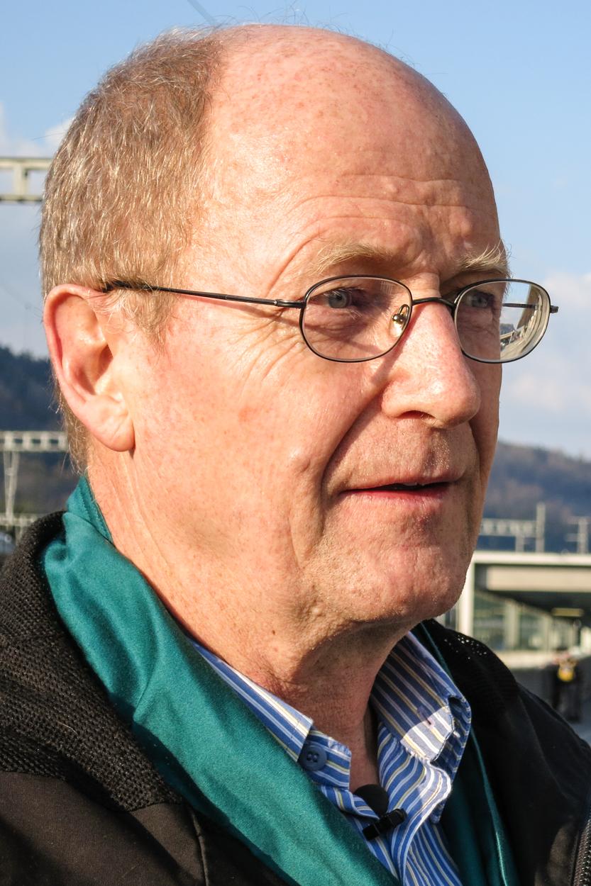 「事故後の数日間、僕に何ができるかと考えた。1回限りのイベントではなく、何か持続できる抗議活動はないかと。そのとき、自転車で5分のところにENSIがあると気がついた。ここが、原発の安全性にお墨付きを渡しているところ。重大な責任を負っているところだ。彼らに、責任をきちんと果たして欲しいと、圧力をかけようと思いついた。反原発の旗を手に1人で入り口に立ち始めた。福島の原発事故後10日たったときだった」。その後、1人また1人と一緒に立ってくれる仲間が増えた。今では約600人のメンバーがいる。
