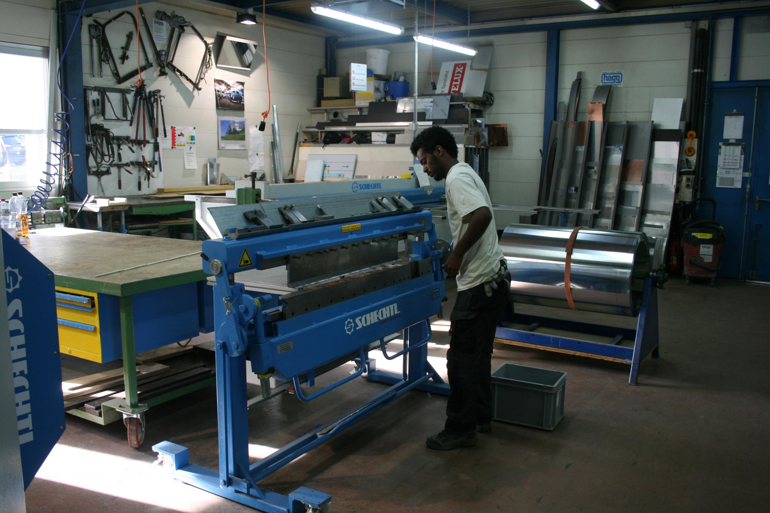 ヘッグは板金細工や屋根ふきを専門としている会社だ。ソロモンさんの隣に立つ経営者のハンス・ホイビさんは、「この業界で訓練生を探すのはなかなか大変だ。この職はもう大勢の若者を惹きつけられる職ではない。外の仕事が多く、天気も関係ないし、かなりの重労働だ」と語る。「1週間の実習の間、彼の仕事ぶりを見て、うちで見習い期間の1年を引き受けようと思った。彼にとってもチャンスだが、うちにとっても一つの投資だ。後続の世代が必要だから」