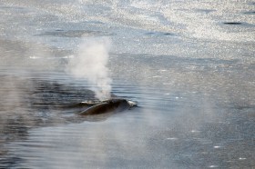 南極大陸に向けて南下中だった時の私たちの船には度々ミナミセミクジラやザトウクジラが訪れた。停泊中の船に近づいて来ることもよくあった。これらの荘厳な生き物たちに出会う度、それは忘れ難い体験となった。船が大陸に近付き、海面のほとんどが海氷で覆われた地点に来ると、ミンククジラやオットセイ、ペンギンを頻繁に見るようになった。ミンククジラは海氷が密集する海域にまで移動し、呼吸のために氷のない海面に浮上する時にその姿を目にすることができる。オットセイは流氷に乗って漂い、船が近寄っても往々にして特別何か感じる様子を見せず、眠っているように見えることが多い。