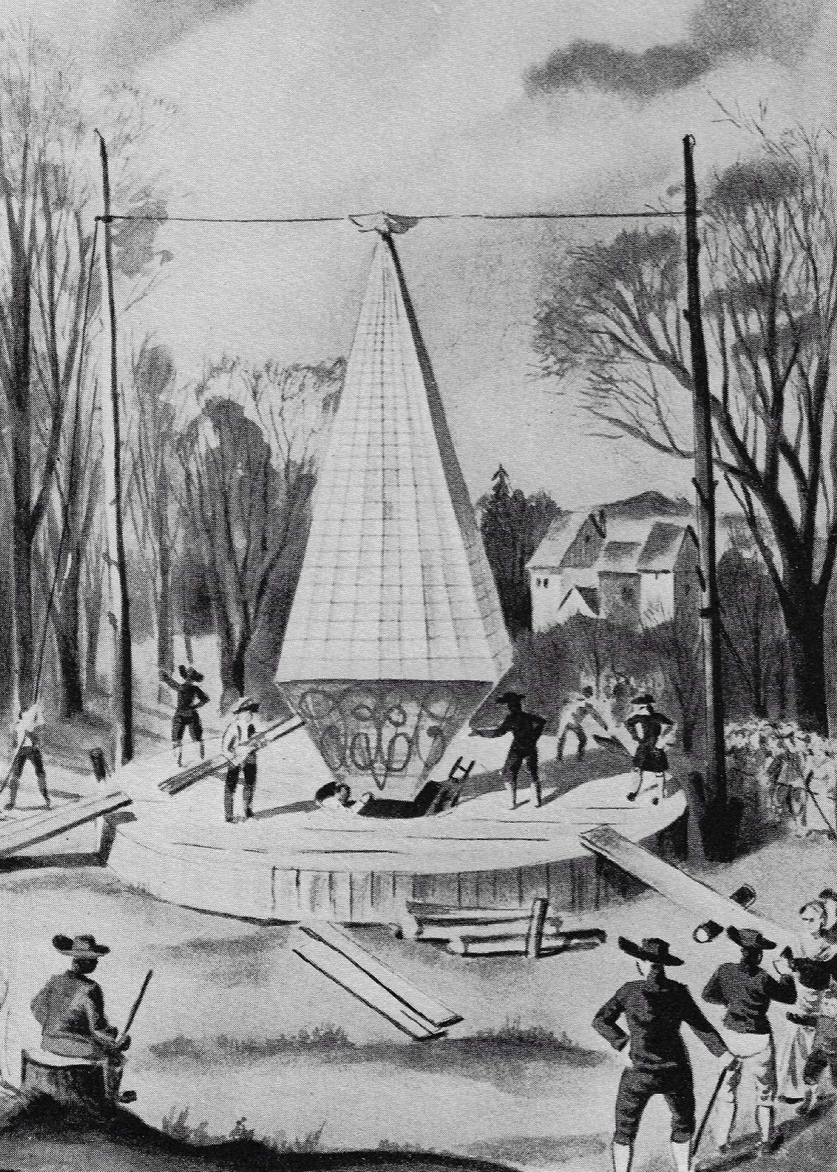 だが実は、この名誉はアントン・チャンに捧げられるはずだった。1757年にバルスタールに生まれ、「空気球仕立て師、機械製作師、花火師」を職業としたチャンは、バルスタールの住民に「豪華な宮殿の形をした巨大な空気マシン」を作ると約束した。それから間もない86年、チャンはバーゼルで「勇敢なおなご」を乗せた気球を空に昇らせようと試みた。しかし、バルスタールで約束した飛行同様、バーゼルでの試みも実現しなかったようだ。それらに関する記録は何一つ残っていない。