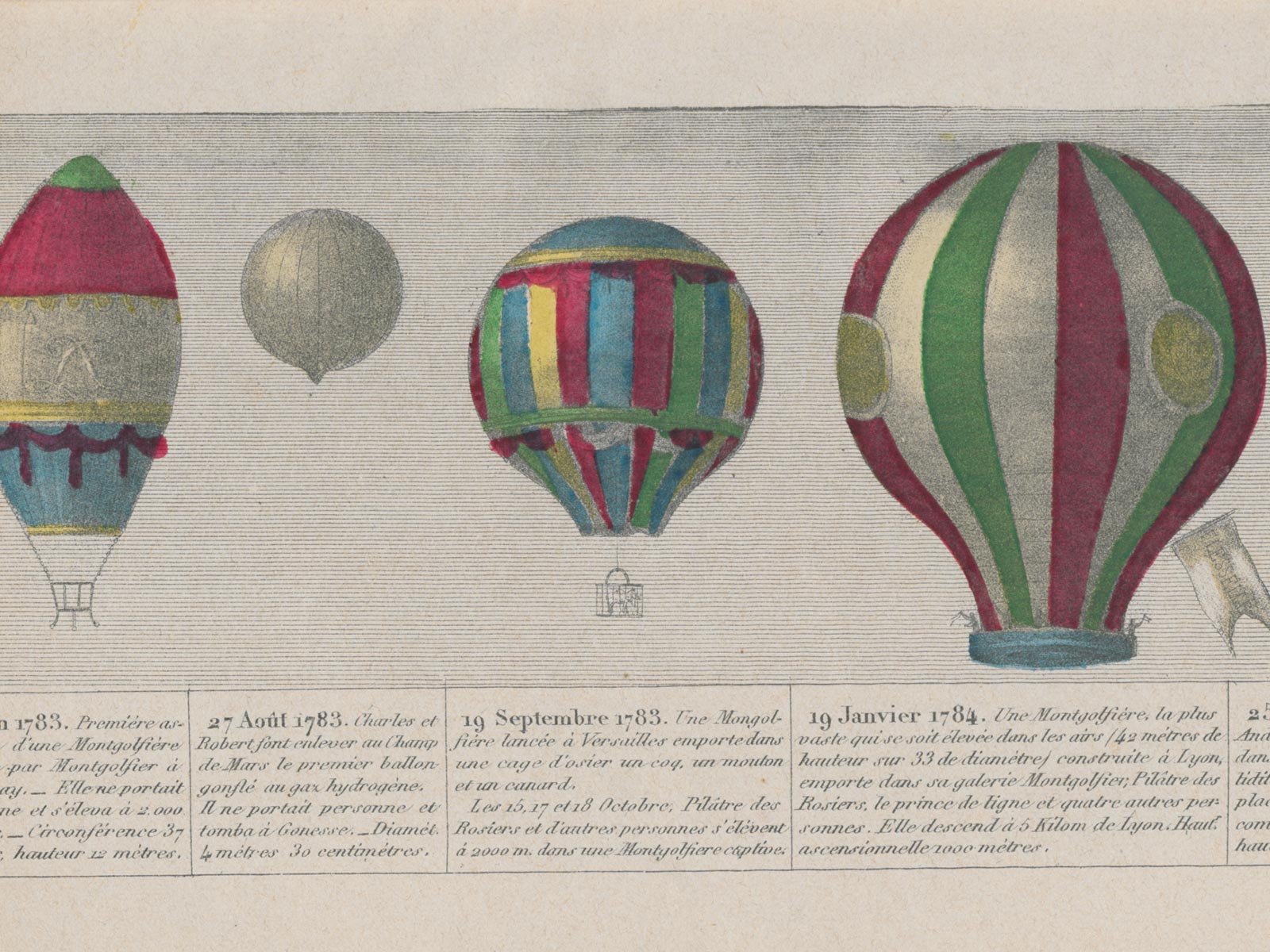 1783年10月19日に駆け巡ったニュースは、まるで爆弾がさく裂したかのごとく衝撃的だったことだろう。フランスのジョゼフ・ミシェルとジャック・エティエンヌのモンゴルフィエ兄弟が、世界で初めて、熱風を利用した係留気球に人を乗せ、約2千メートルの上空に見事浮かび上がらせたのだ。5年後、スイスもこれに追いつき、フランス人のジャン・ピエール・ブランシャールが88年5月5日、バーゼルで「気体静力学的試み」を催して、スイスで初めて乗客を乗せた水素気球を飛ばすことになる。