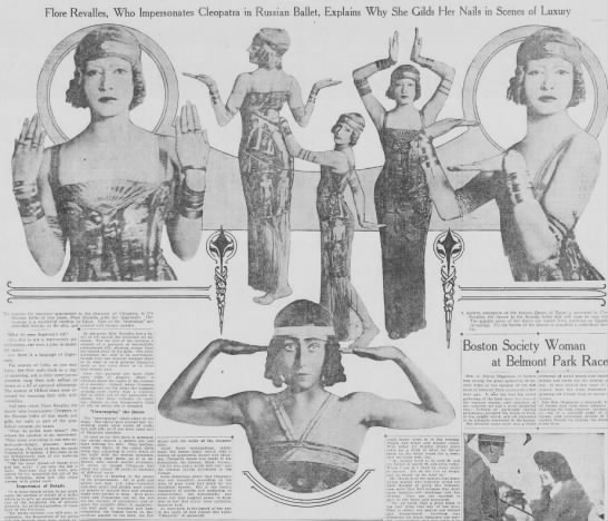 ロール出身のエミリー・フローラ・トレイシュラーは、米国で何よりエキゾチックな美人としてもてはやされ、人々は「浅黒の美しさ」や「エキゾチックな趣」を称賛した。バレエ・リュスは、彼女に主役を演じさせた「シェヘラザード」とそれに続く「クレオパトラ」で、オリエントの描出を求める西洋の観客の飽くなき渇望に応えた。バレエ・リュスはもはやチュチュや白い衣装とは無縁となり、女性たちはレオン・バクストの手によるオリエントの空想世界を表現したカラフルな薄手の衣装に身を包んで裸足で踊った。このスタイルは、20年ごろ米国のスターの間で流行した。
