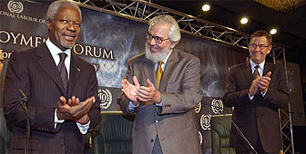 「9月11日の影響は今、世界中を震撼させている。テロの経済的、社会的な帰結がどうなるか、誰にも予測できない。が、経済が弱ければツケは高くなるという事ははっきりしている。」アナン国連事務総長は、世界雇用フォーラムの開会式のスピーチで語った。ILOのソマビア事務局長は、「この危機がどれくらい深刻なのか、どれくらい続くのかわからない」とし、成長を刺激する事が下降する経済傾向を逆転させる唯一の方法だと語った。