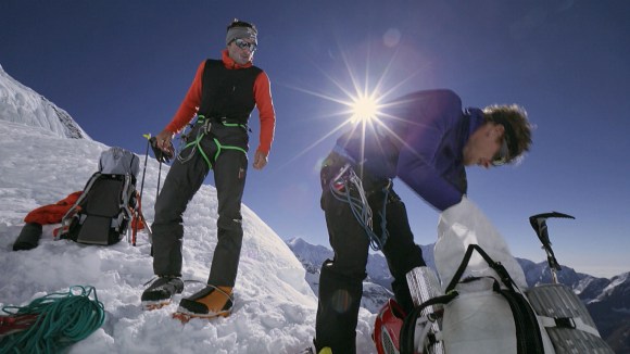 アンナプルナの岩壁にたった一人で挑むことになったウエリ・シュテック。下のベースキャンプで待つ仲間は、シュテックがどうなっているのか何もわからない。そしてスタートから28時間が経った翌朝、シュテックが姿を現した。