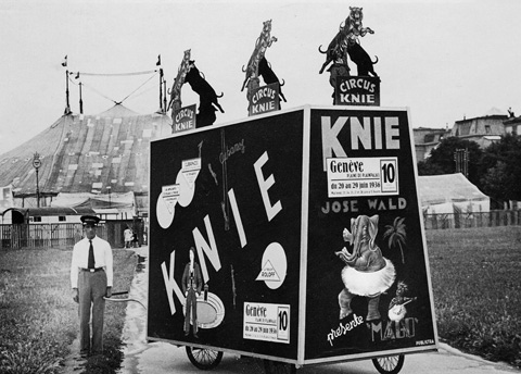 スイス国立サーカス「クニー( KNIE )」は1919年、クニー家のルドルフ、カール、フリードリッヒ、アユゲーン ( 左端から順に ) の4兄弟によって始められた。次男ルドルフは曲芸、会計、三男カールは曲芸と動物の調教、長男フリードリッヒは座長、四男アユゲーン は綱渡りと技術面をそれぞれ担当した ( Keystone )