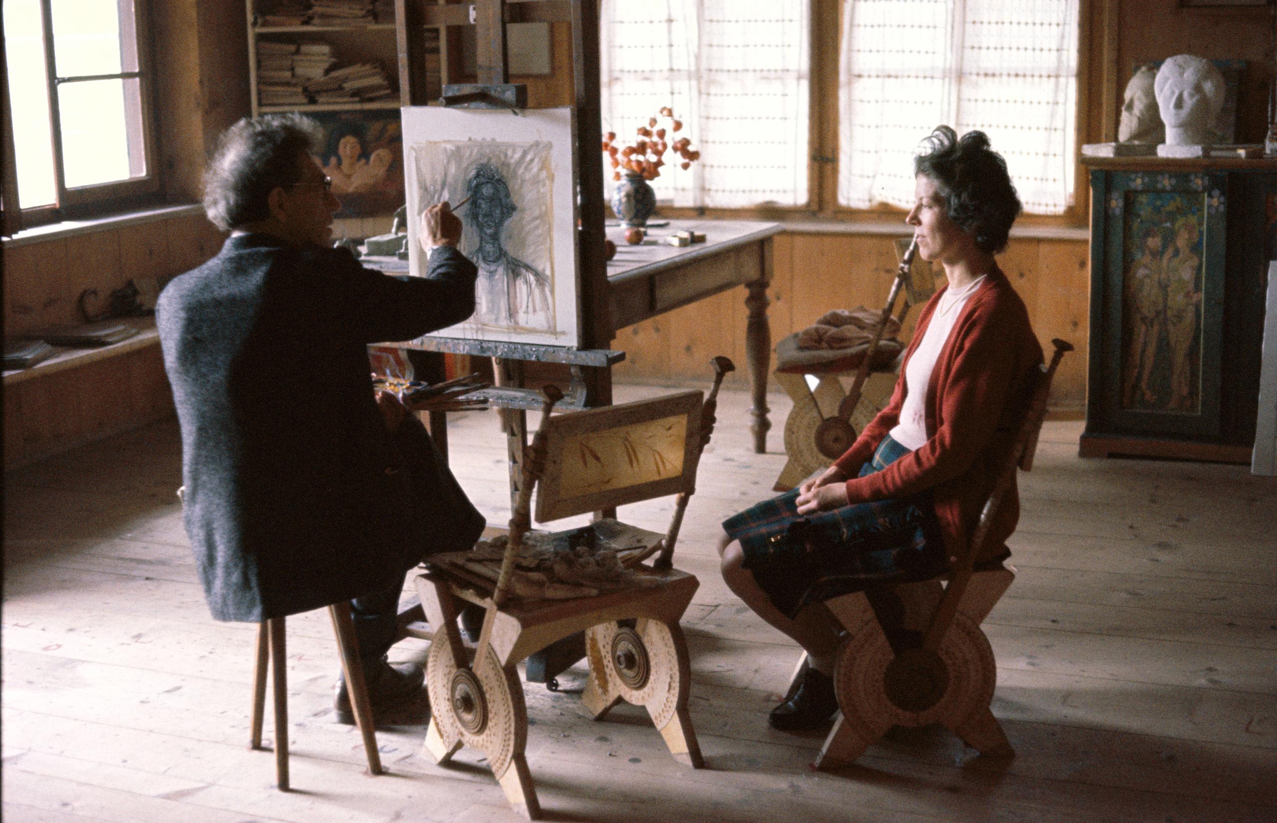 二人が知り合ったのは、兵役で軍に勤務していた1943年。写真家エルンスト・シャイデッガーはその年から、彫刻家アルベルト・ジャコメッティの白黒写真をジャコメッティの亡くなる1966年まで撮り続けた。最近、シャイデッガーの保管資料から40枚の未公開カラー写真が見つかった。