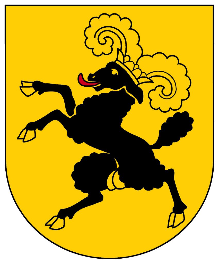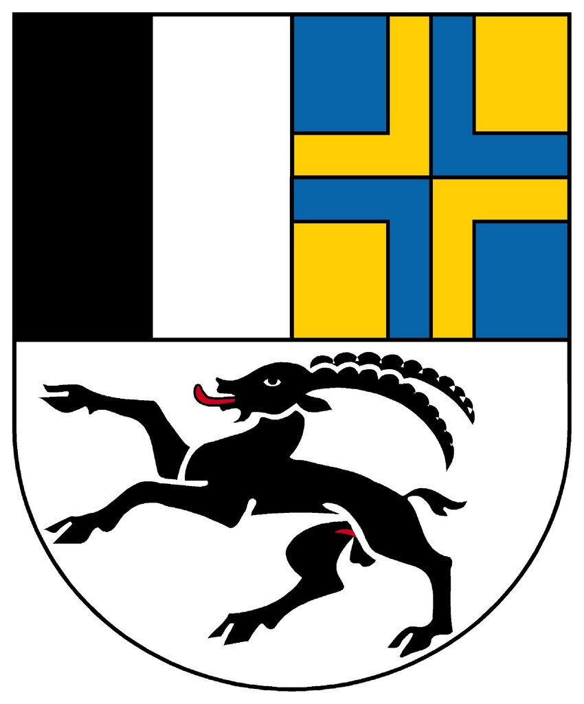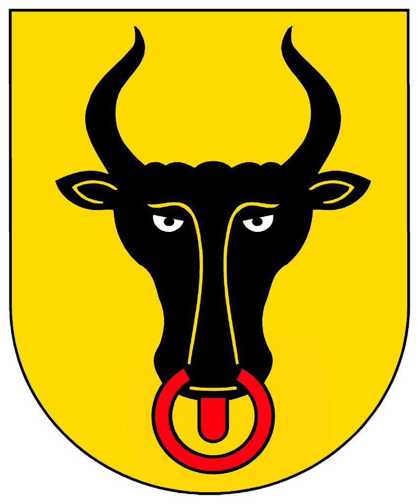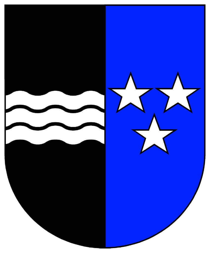 州旗 左は黒、右が青と縦の2色。左の中心には白い波線が3本描かれ、アーレ川がもたらす豊饒を表す。左にある3つの白星は当時の支配者バーデン伯、フリックタール伯、フライアムト伯を表す。