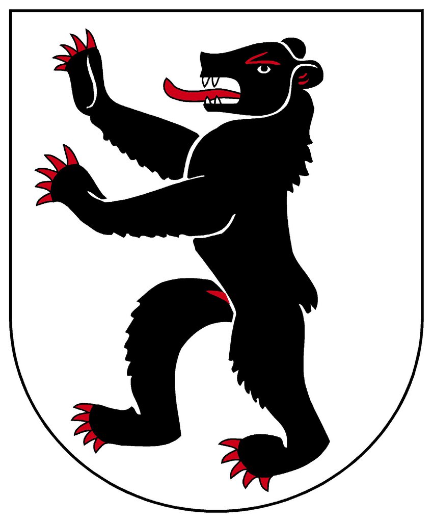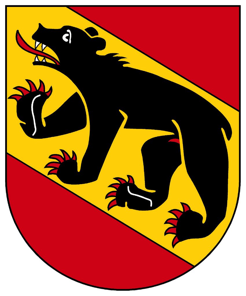 州旗 赤地に斜めに黄色い縞が入っている。黒いクマが赤い舌を出している。ベルンという名称はクマに由来する。
