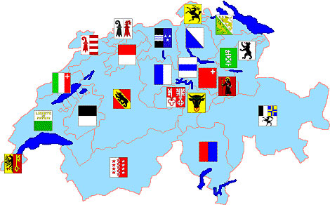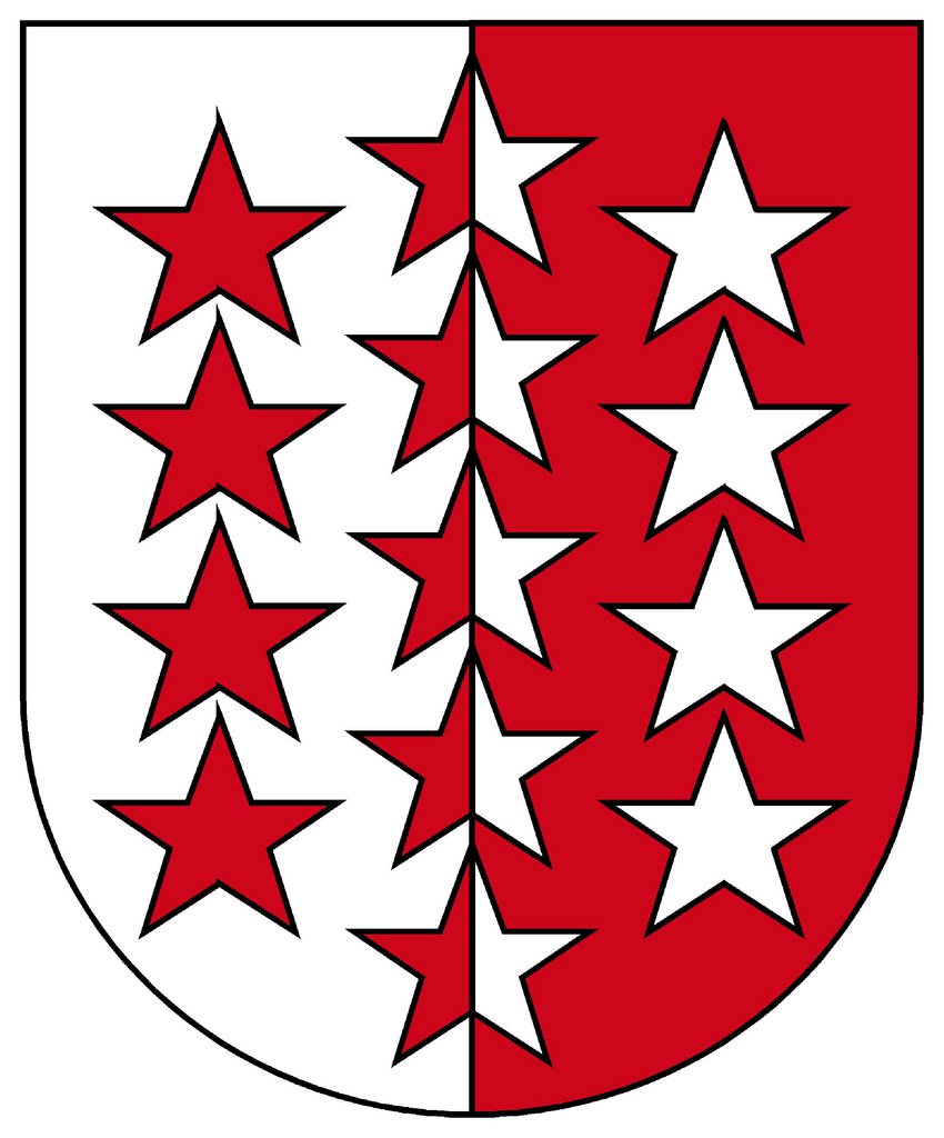 州旗 左が白地、右が赤地の2色。縦3列に星が並ぶ。星の色は地の色と反転。よって中心の星は左が赤で右が白となっている。数は全部で13個。キリスト教のシオン教区のワッペンのデザインから取った。星の数は当時あった13の地域を表す。
