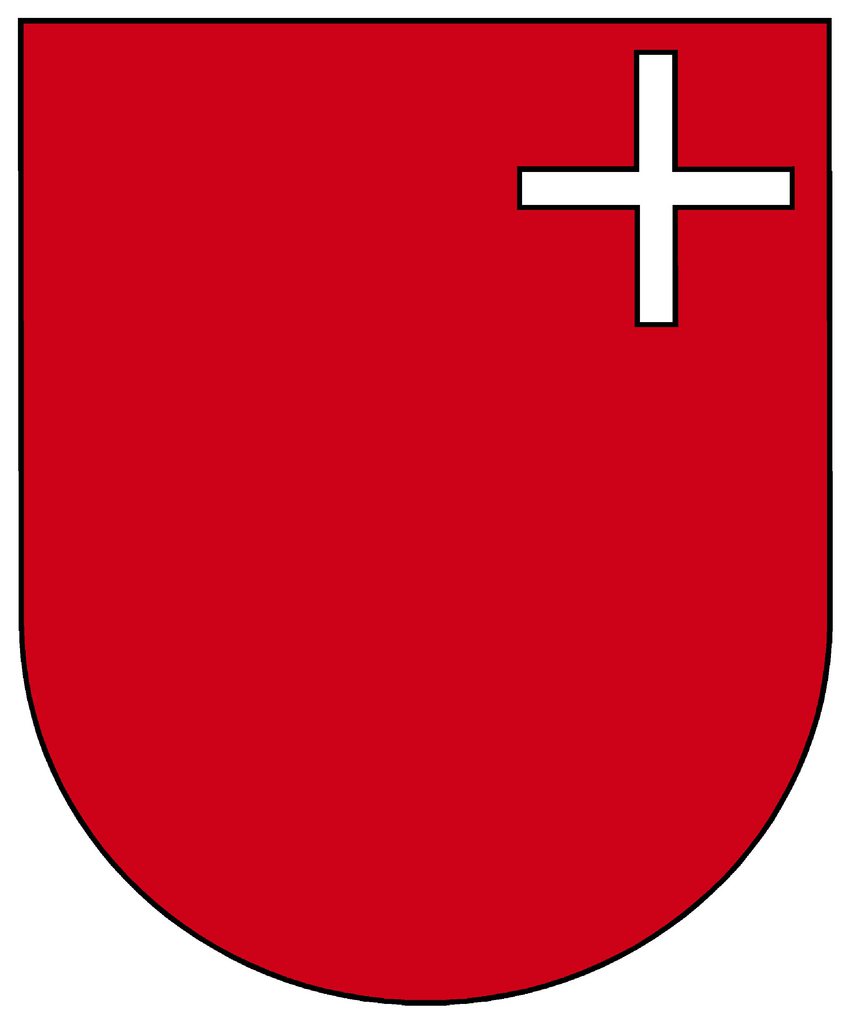 州旗 左が白、右が赤と白の縞模様。左の大司教の杖はバーゼル大司教区に属することを表す。また、縞模様の部分の白は3本で、3つの地域を表す。