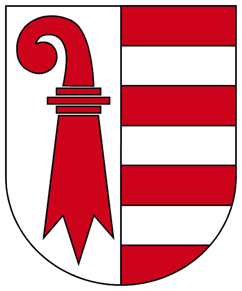 州旗 白地に左向きの黒い「バーゼルの杖」。バーゼルの大司教の杖に由来する。
