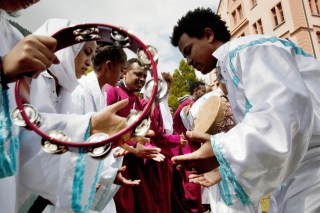毎年行われる巡礼行事に音楽のリズムは欠かせない。今年は12組のコーラス隊が朗らかに歌い、ブブなどの伝統衣装に身を包んだ女性たちが太鼓や木琴に合わせて踊った。