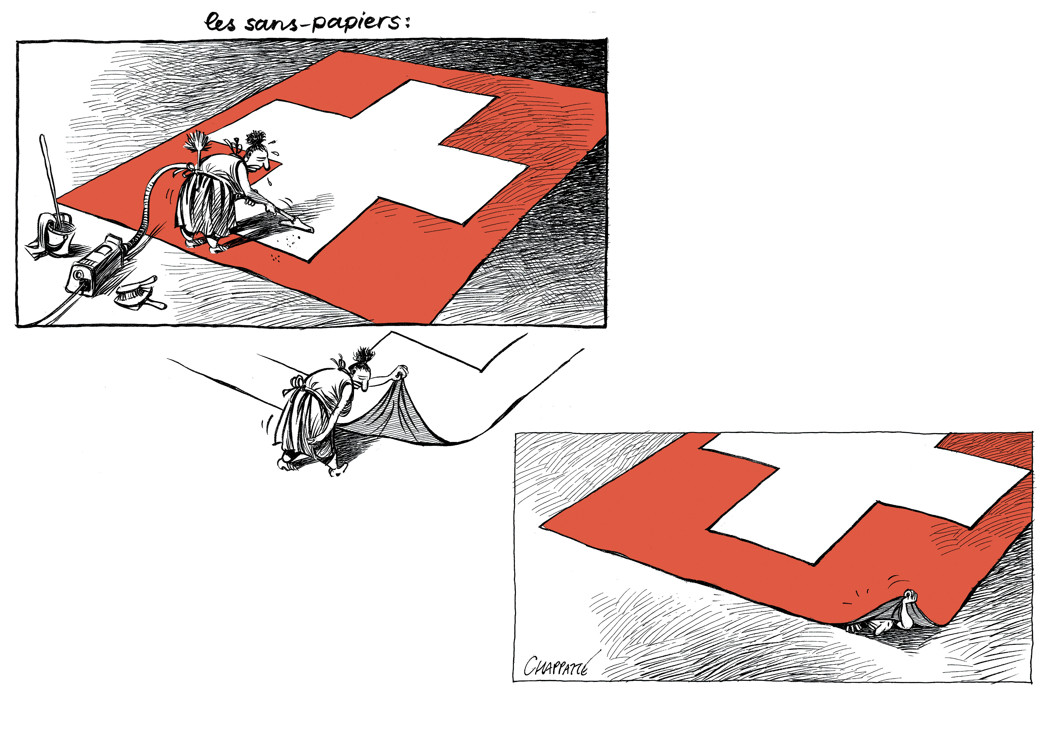 これまで16冊の作品集を発表してきたシャパットは、ジュネーブ州の日刊紙ル・タンの風刺画家だ。また、ドイツ語圏日曜紙NZZ・アム・ゾンタークや米インターナショナル・ニューヨーク・タイムズ、ポータルサイト「Yahoo! Actualités」にも寄稿している。