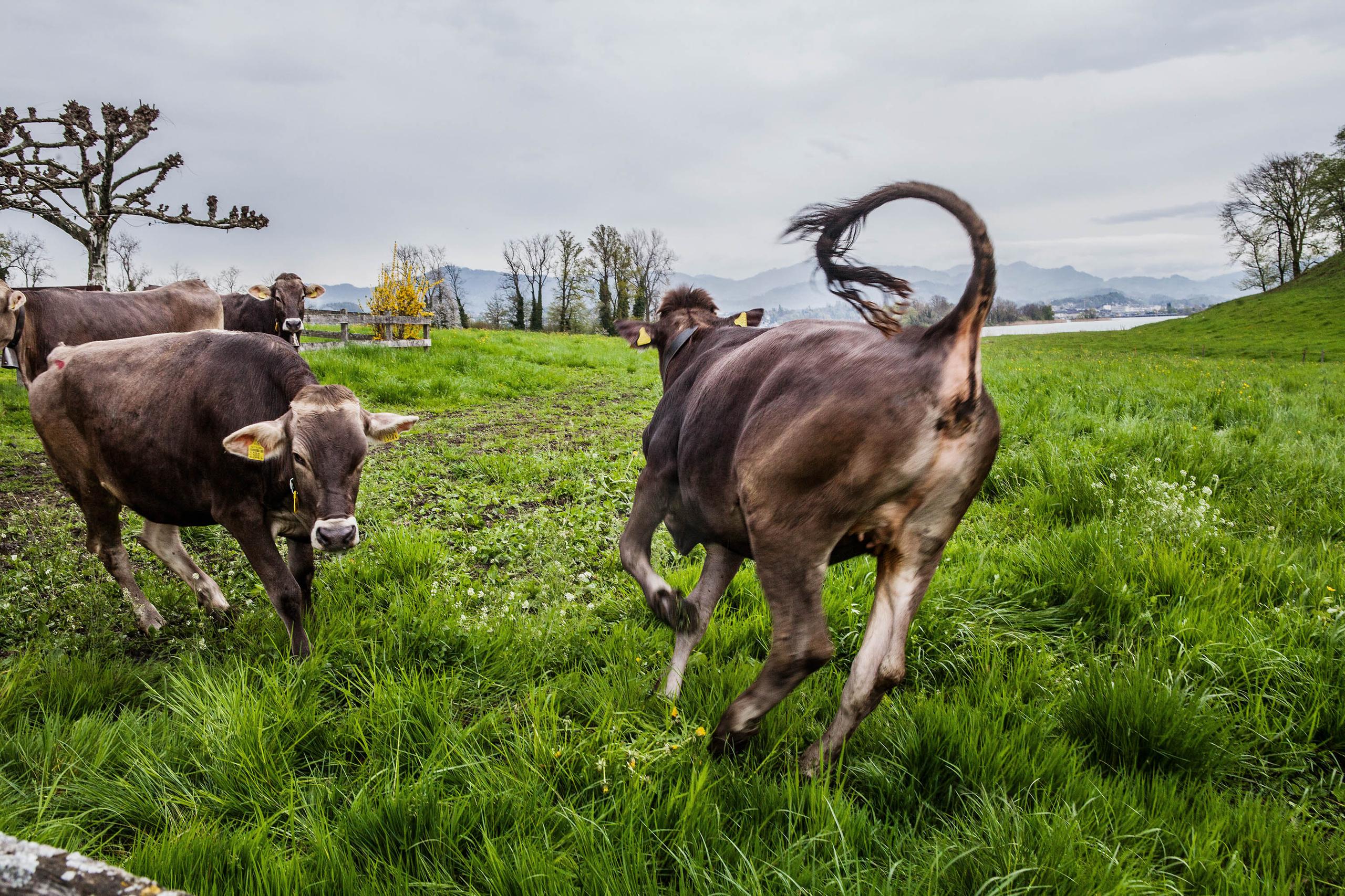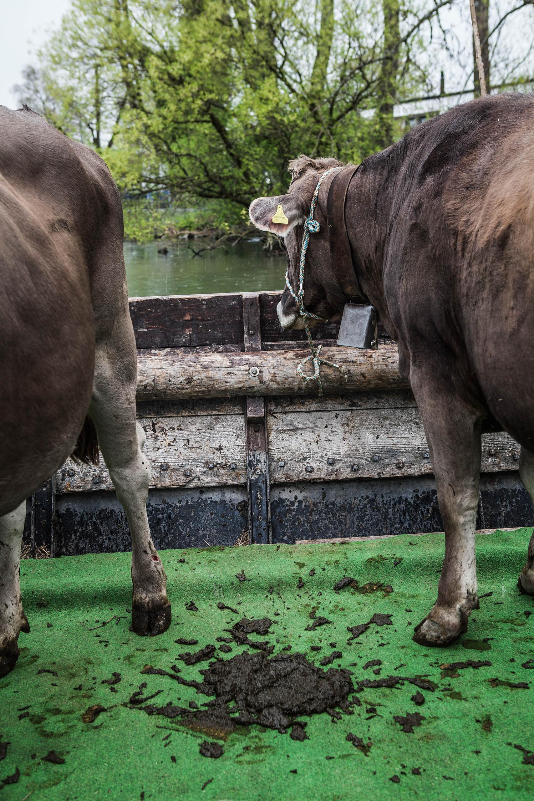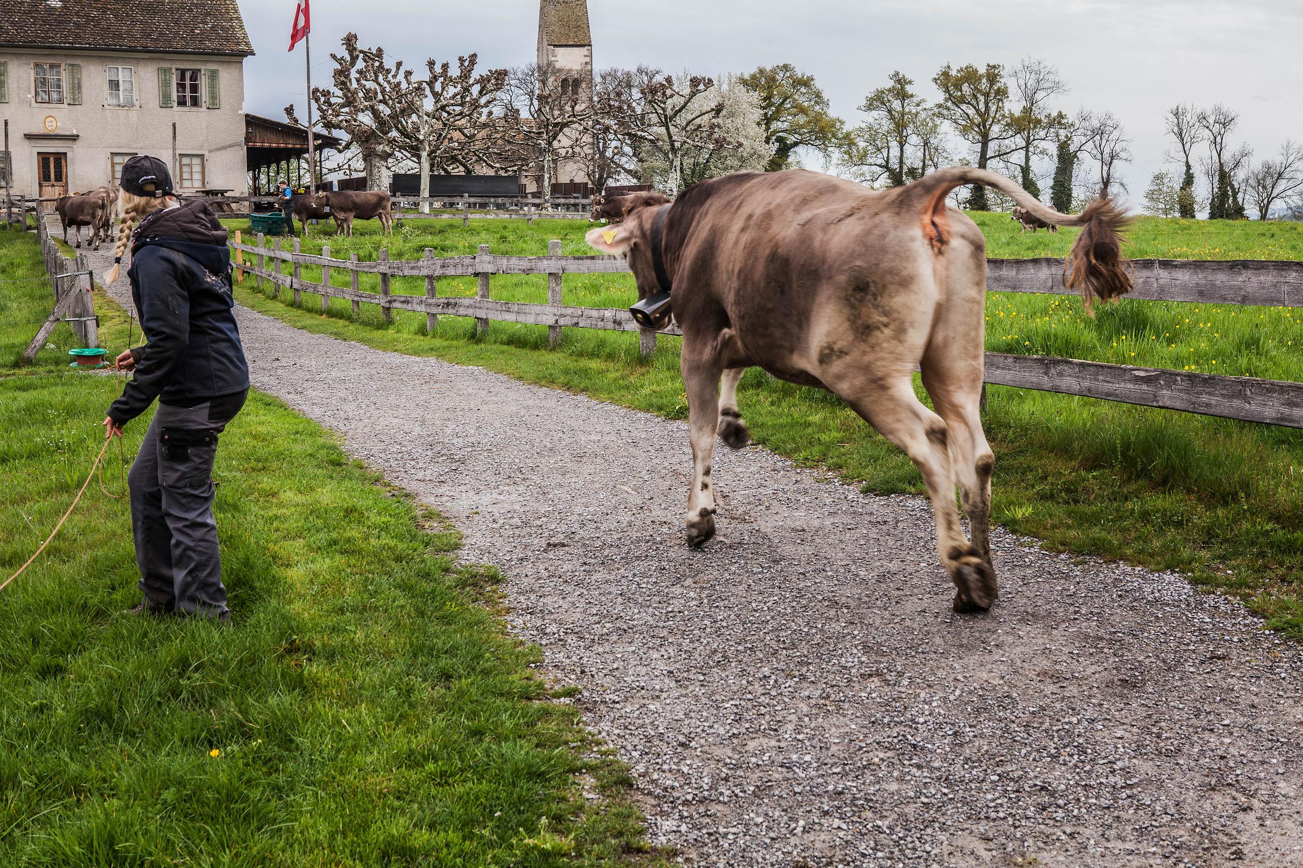 牛たちは5月末になるとグラウビュンデン地方の高原に移動し、そこで秋まで過ごした後、再び小船でウーフェナウ島に戻る。ヘッキーさんの農場は、これを29年間続けている。