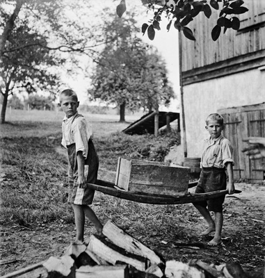 薪 ( まき )を割る。ベルン州オーバービップ ( Oberbipp ) の孤児院、1940年