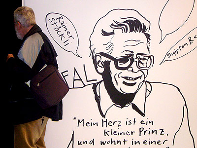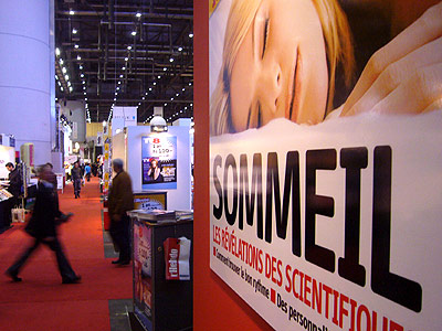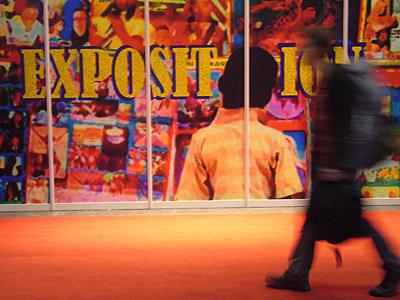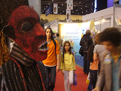 ジュネーブで開催されている本の見本市 ( Salon du Livre ) では、本物の人の顔と会場の装飾が互いに混じり合い、浸透し合っている。最近の展示会のオープンセレモニーで ( 写真と文: swissinfo、ベルナール・レショ )