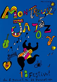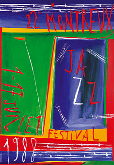ニキ・ド・サンファル、キース・へリング、アンディ・ウォーホル、フィル・コリンズが手がけた歴代ポスター。フェスティバルの舞台や人生の一場面が思い起こされる ( 写真: Montreux Jazz Festival )