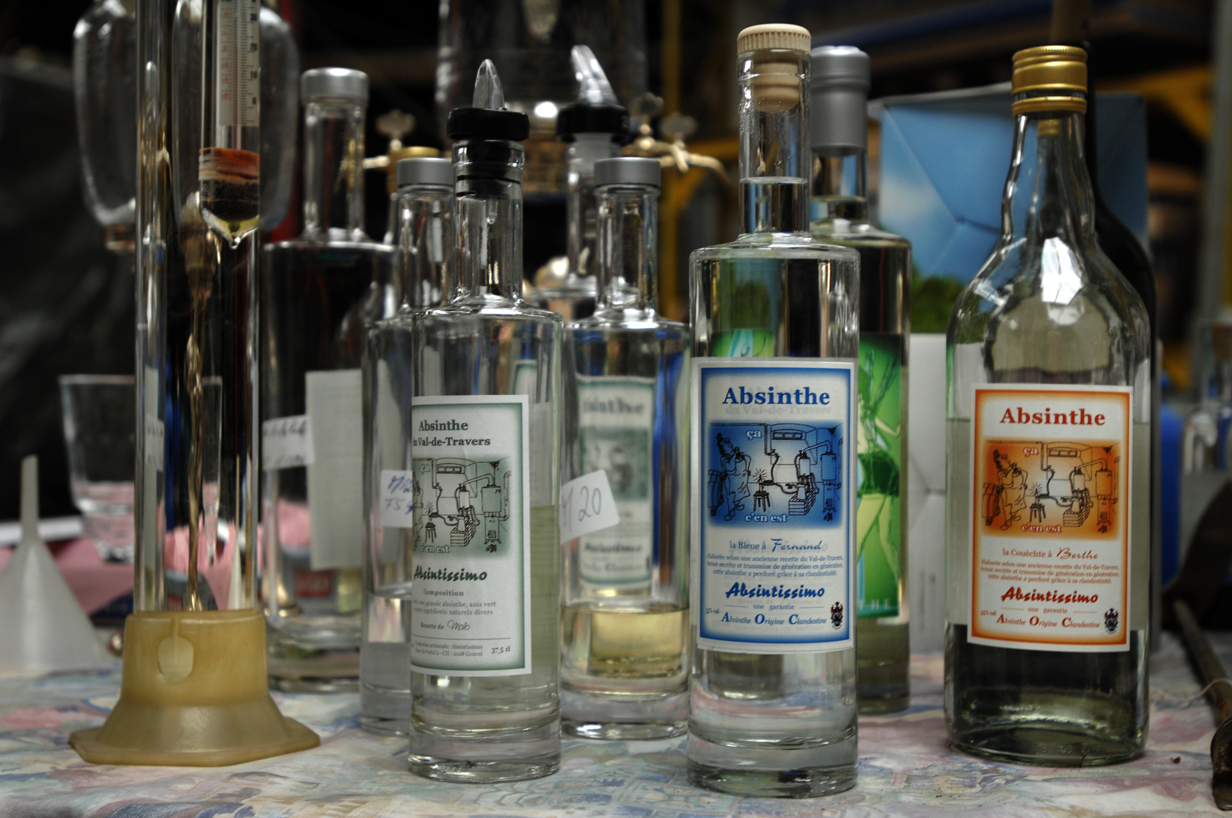 ヌーシャテル州ジュラ地方ヴァル・ド・トラヴェール ( Val-de-Travers ) に古くから伝わる火酒アブサン ( Absinth ) 。1908年から2005年までアブサン造りは禁止されており、人々は不満を募らせていた。アブサンは万能薬として愛され、芸術家や詩人はその豊かな刺激に魅せられた。しかし、同時にアブサンは「毒のある妖精」として忌み嫌われてもいた。ルネ・ヴァンナーさんは今日、合法的に7種類のアブサンを作っている。写真家ペーター・モジマン氏が2007年にヴァンナーさんを訪問した。