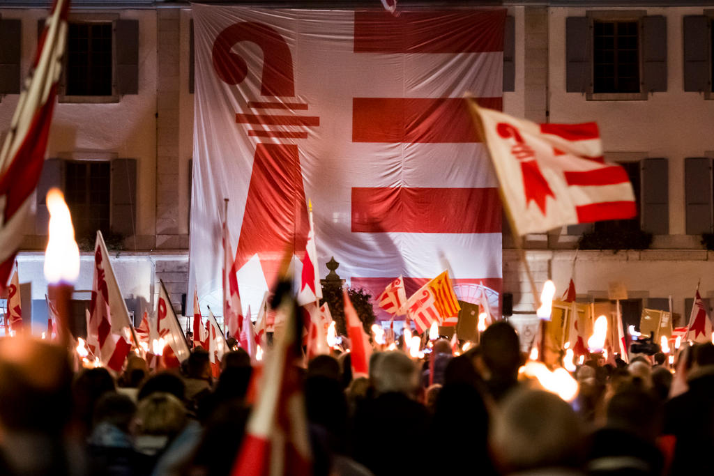 スイス北西部のベルン州ムーティエで9日、ジュラ州への移籍を決めた住民投票を無効とするベルン州当局の決定に対する抗議デモが行われた。5千~1万人が街でロウソクに火をともし、厳かに異議を唱えた。