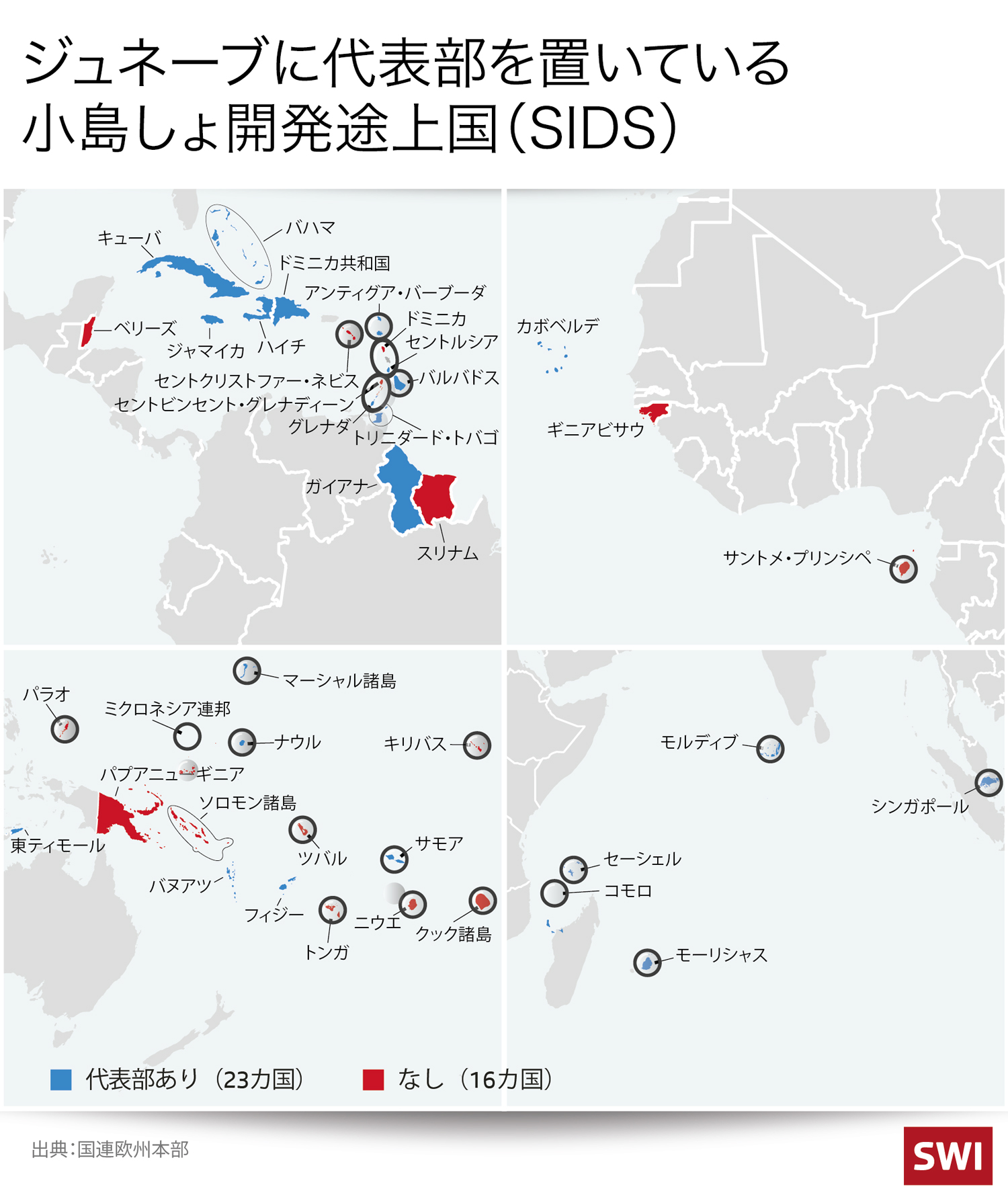国連が指定した小島しょ開発途上国(SIDS)外部リンク39カ国のうち、3分の1はジュネーブに常駐代表部を置いていない。だが人権理事会は、気候変動がいかに国連そのものの存在を脅かしているかを国際社会に知らしめる重要な舞台だ。