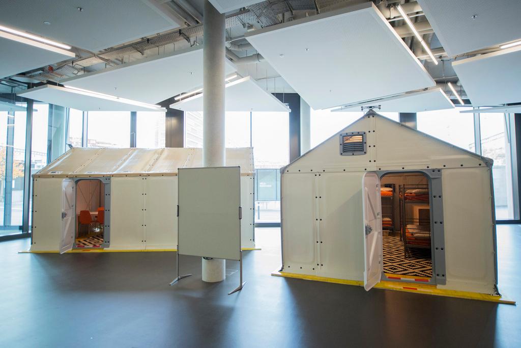 その対応策として、アールガウ州は「イケア・ハウス」とも呼ばれている仮設住宅の導入を決めた。世界中の難民キャンプで生活をする人々の暮らしの改善を目的に、ベター・シェルター社外部リンクによって同仮設住宅は開発された。開発のために国連難民高等弁務官事務所(UNHCR)とイケア基金外部リンクが資金的援助を行った。同仮設住宅は数年前にイラクとエチオピアの難民キャンプで試験的に導入され、今年より大量生産が行われている。