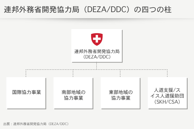援助団は連邦外務省開発協力局(DEZA/DDC)の人道支援分野に属する。そして開発協力局は連邦外務省と併設する組織。つまり援助団の活動はスイス外交政策の一環であり、開発協力局の指令を具体的に実行する「兵士たち」なのだ。