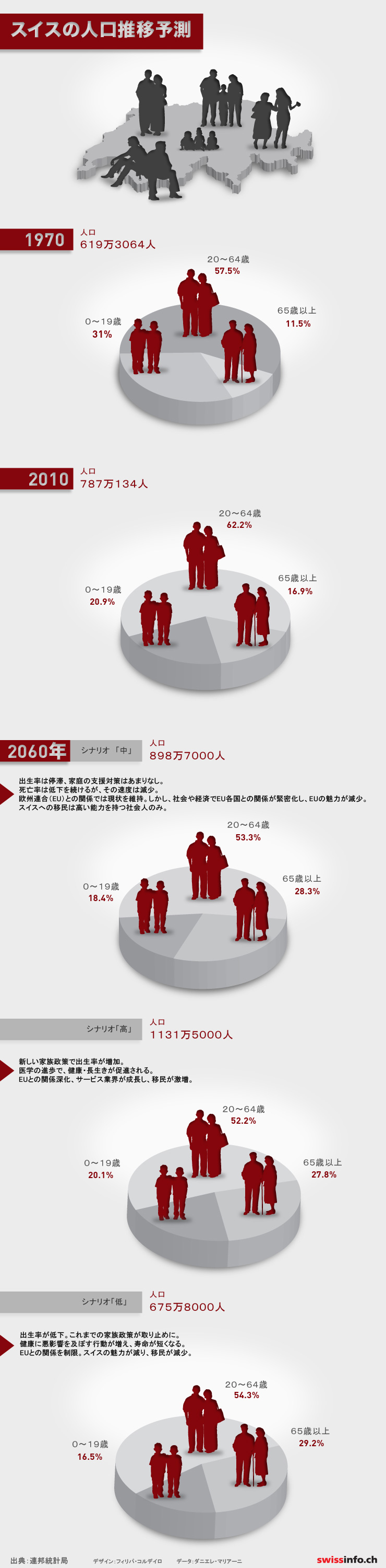 スイスの政治 回避しきれない進展 swissinfo.ch 現在のスイスでは、65歳を超える人の割合は5人に1人を割っている。それが2060年には、少なくとも4人に1人のレベルまで増える見込みだ。連邦統計局(BFS/OFS)によると、若者の占める割合は同時に半減するという。 このコンテンツが公開されたのは、 2012/12/06 11:00 1 分 swissinfo.ch 人気の記事 世界の読者と意見交換 JTI基準に準拠 おすすめの記事: SWI swissinfo.ch ジャーナリズム・トラスト・イニシアチブの認証授受 swissinfo.chの記者との意見交換は、こちらからアクセスしてください。 他のトピックを議論したい、あるいは記事の誤記に関しては、japanese@swissinfo.ch までご連絡ください。 続きを読む