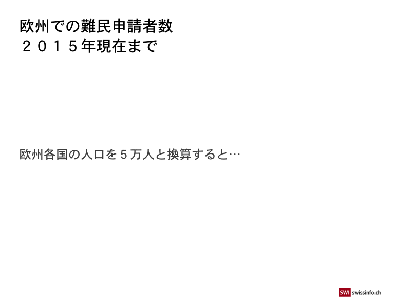 現在、一日に何千人もの難民や移民が、庇護やより良い生活を求めてヨーロッパに押し寄せている。この前例のない事態に、EU加盟国は連携して共通の対応策を見つけようと必死だ。一体、どの国にどれほどの難民が殺到しているのだろうか?また、加盟国への難民の割り当てが実際に行われるとしたら、どのような影響が出るのだろうか?スイスインフォはインタラクティブなグラフを用いて、その答えを探った。