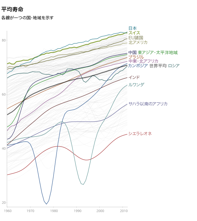 社会の高齢化の原因は、平均寿命が延びたことよりもむしろ出生率の低下にある。1960~2012年に世界の平均寿命は35%(18年)伸びた。スイスは世界でも新生児の平均余命の最も高い国の一つだ(2013年では82歳以上)。
