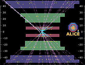 こうした目的からすると、今回初めての陽子同士の衝突は、加速器の性能の良さを保障する画期的なできごとだ。11月23日朝、時計方向と反時計方向に陽子ビームパンチが入射され、その後軌道を修正しながら27キロメートルのリング内のアトラス 大型実験装置があるポイントで衝突が起こるよう調整をしている最中、14時22分に衝突が起こった。