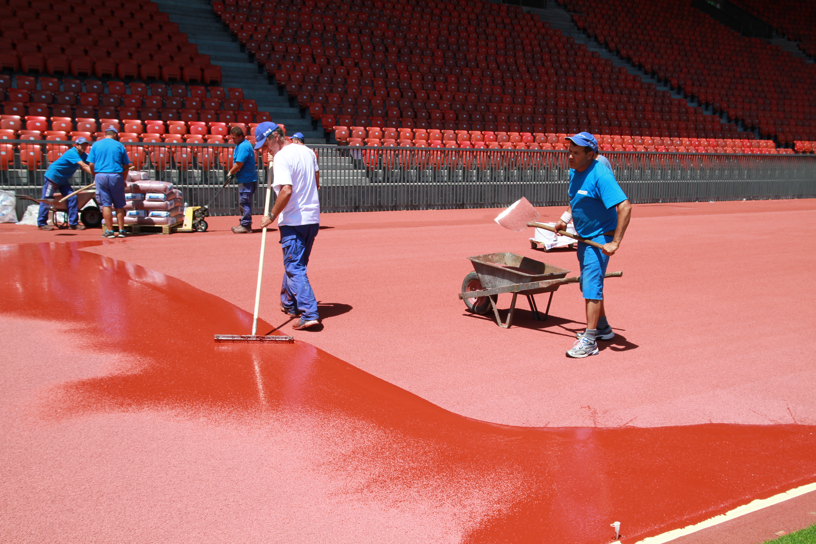今年は8月12〜17日にヨーロッパ陸上競技選手権大会外部リンクが行われ、その11日後には世界最速の男、ウサイン・ボルト選手が出場するヴェルトクラッセ・チューリヒ陸上競技大会外部リンク(Weltklasse Diamond League)が控える。それに備え、80万フラン(約9036万円)をかけてトラックの再舗装が行われた。