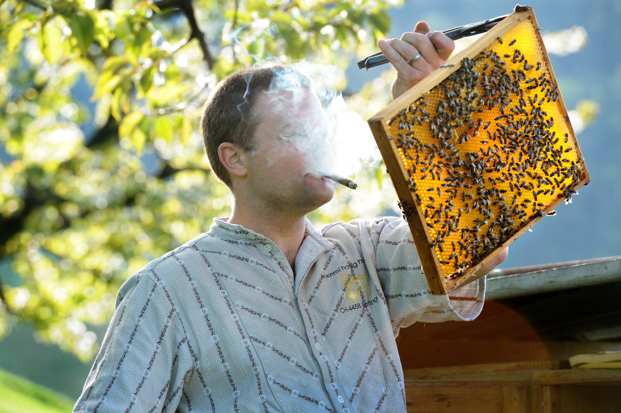 swissinfo.ch : あなたとミツバチの関係は特別ですね。あなたのおじいさんは缶詰工場を経営していましたが、缶詰にする果物用に養蜂をしていました。あなた自身も養蜂をしていますし、娘さん夫妻はミツバチの免疫系を研究しています。ミツバチにとりつかれているような感じがしないでもないですが。