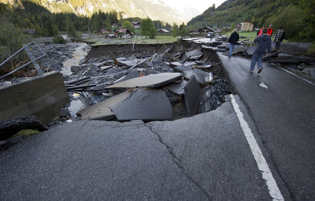 豪雨と高温による大量の雪解け水の発生で、ベルナー・オーバーラント地方は10月10日、スイスでは稀に見る大洪水に襲われた。この被害により、各地で交通が遮断された。