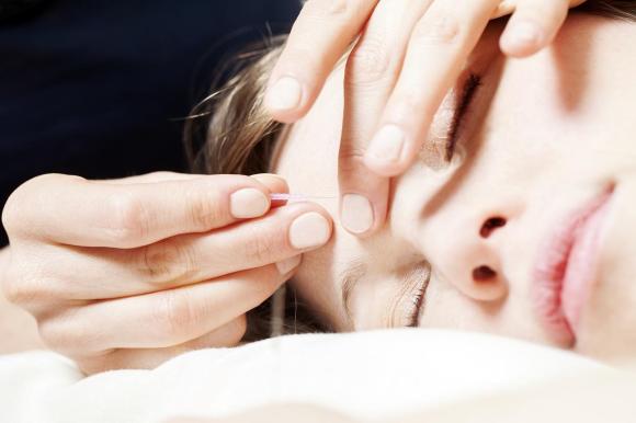 白髪交じりの眉毛とはさようなら。営業を再開したベルンの美容室Gallery Hairstyleのオーナー、スザンネ・ハイデガーさんがフェイスシールドを着け、顧客の眉毛の色を染める Peter Klaunzer/Keystone