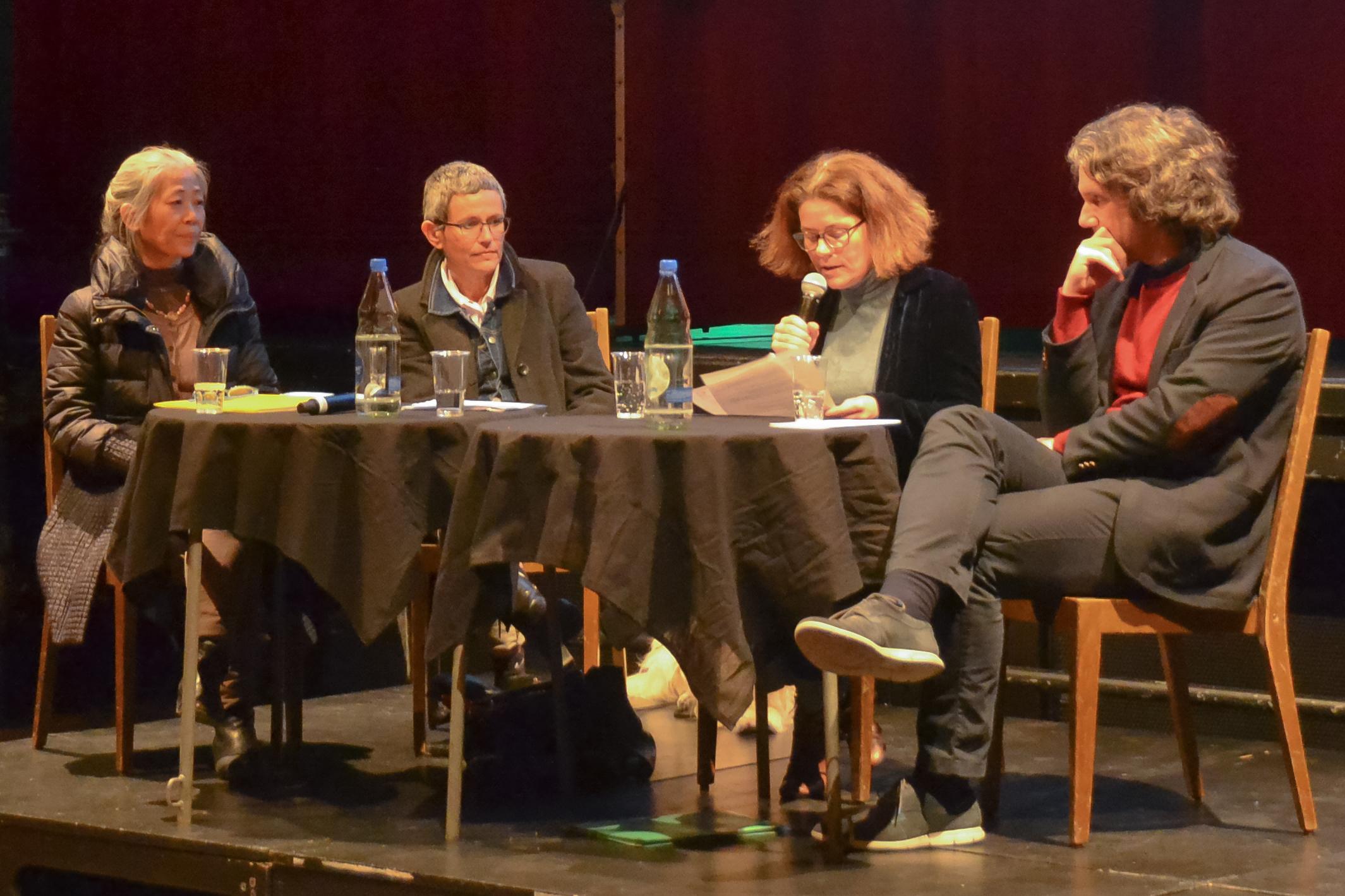 12日に行われた上映後のディスカッションではイェッギさん司会のもと、原発事故4年後の日本社会について、左派系週刊紙WOZ外部リンクの編集者で福島原発事故についての著書もあるスーザン・ボース記者、チューリヒ大学のダヴィッド・キアヴァッチ教授外部リンク(日本社会学)、スイス在住日本人による反原発団体スイスアジサイの会外部リンクのワーグナーますみ代表が各自意見を話した。
