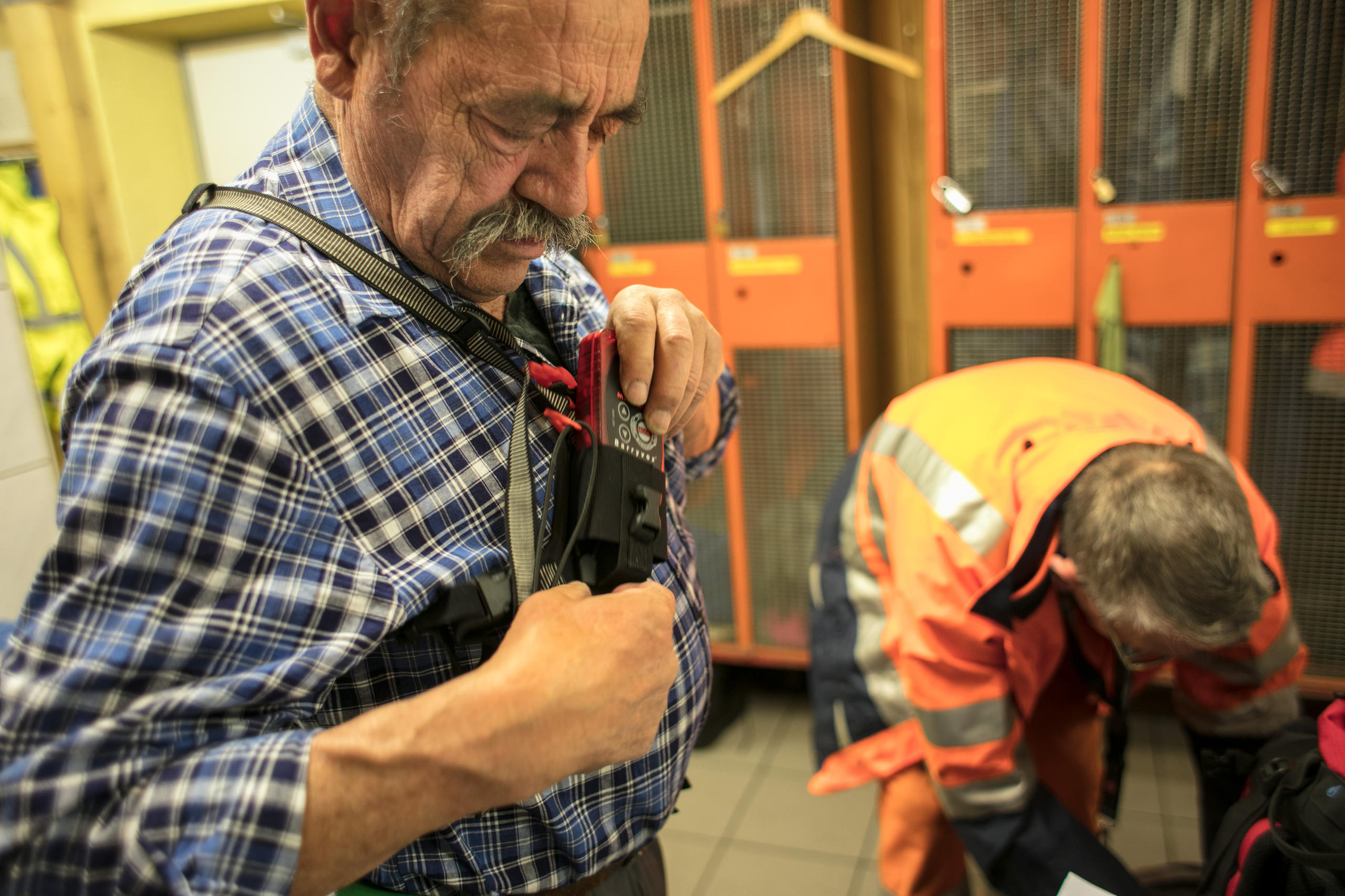 機関車が車庫から出てきた。午前6時半、汽笛を鳴らし、ボランティアたちを乗せて除雪作業場まで出発する。同時に、2人が列を離れて車に乗り込んだ。2人は保安責任者で、作業場の正面の山中で1日を過ごす。その使命は、雪の層を観察し、可能な限り早く雪崩の危険を判断し、即座にトランシーバーで作業員たちに知らせることだ。