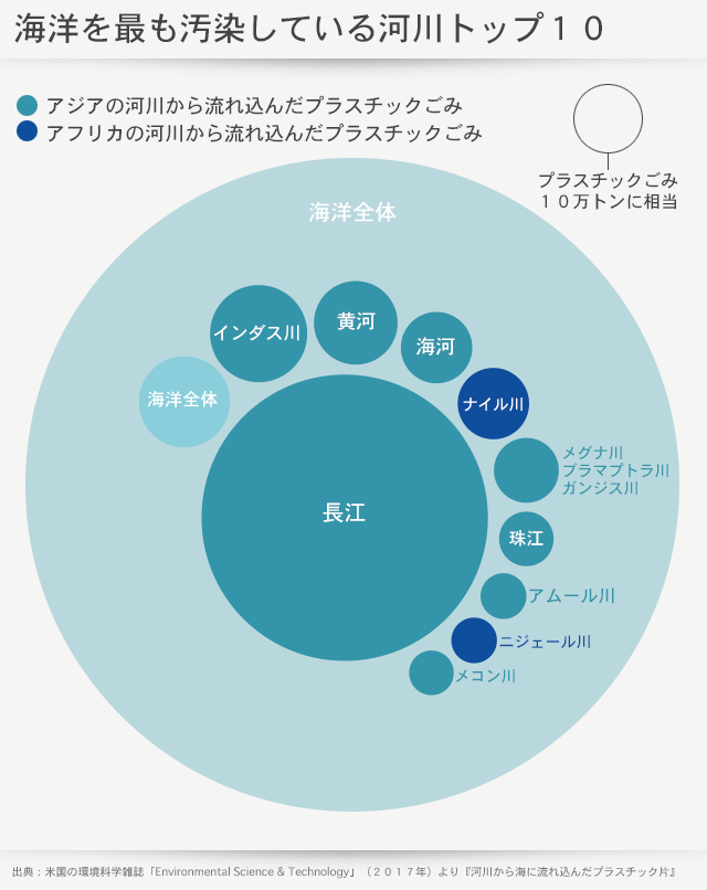 海が直接汚染されているわけではない。米国の科学雑誌「サイエンティフィック・アメリカン外部リンク」のレポートによれば、プラスチックごみの大半が10の河川に集まっており、その多くは東南アジアにあることが分かった。