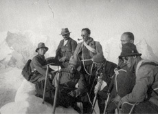 翌十七日快晴、午前二時に起床し、軽い朝食の後三時出発。山ランプに足下を照らしながら登り、七時四十分には、頂上に立つた。一行を二組に分けた。一つはアマター、殿下、フーレル、槇、フリッツ。他はブラヴァンド、渡辺、エミールであった。このような組の編成は私として万全を考えたためであった。この一行は力量も充分なので、途中些かの渋滞もなく午前十時には小屋に帰着した。