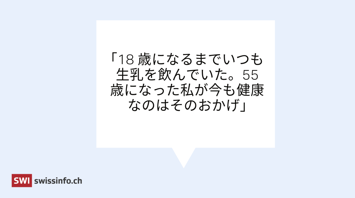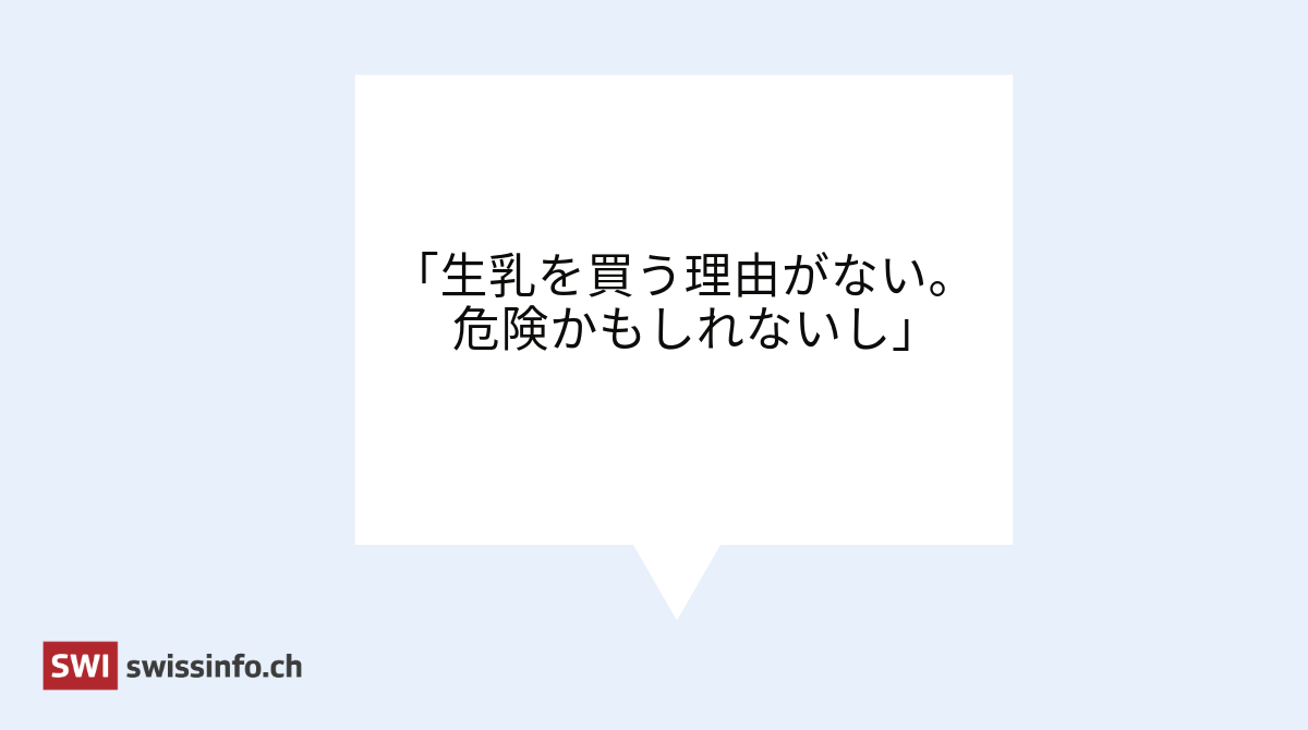 連邦内務省食品安全・獣医局(BLV/OSAV)の広報官は、「スイスでは、生乳はそのまま消費する食品とはみなされていない。賞味期限や保存条件、正しい加熱方法を理解している消費者に対してのみ、生乳の販売を認めている」とEメールで回答した。